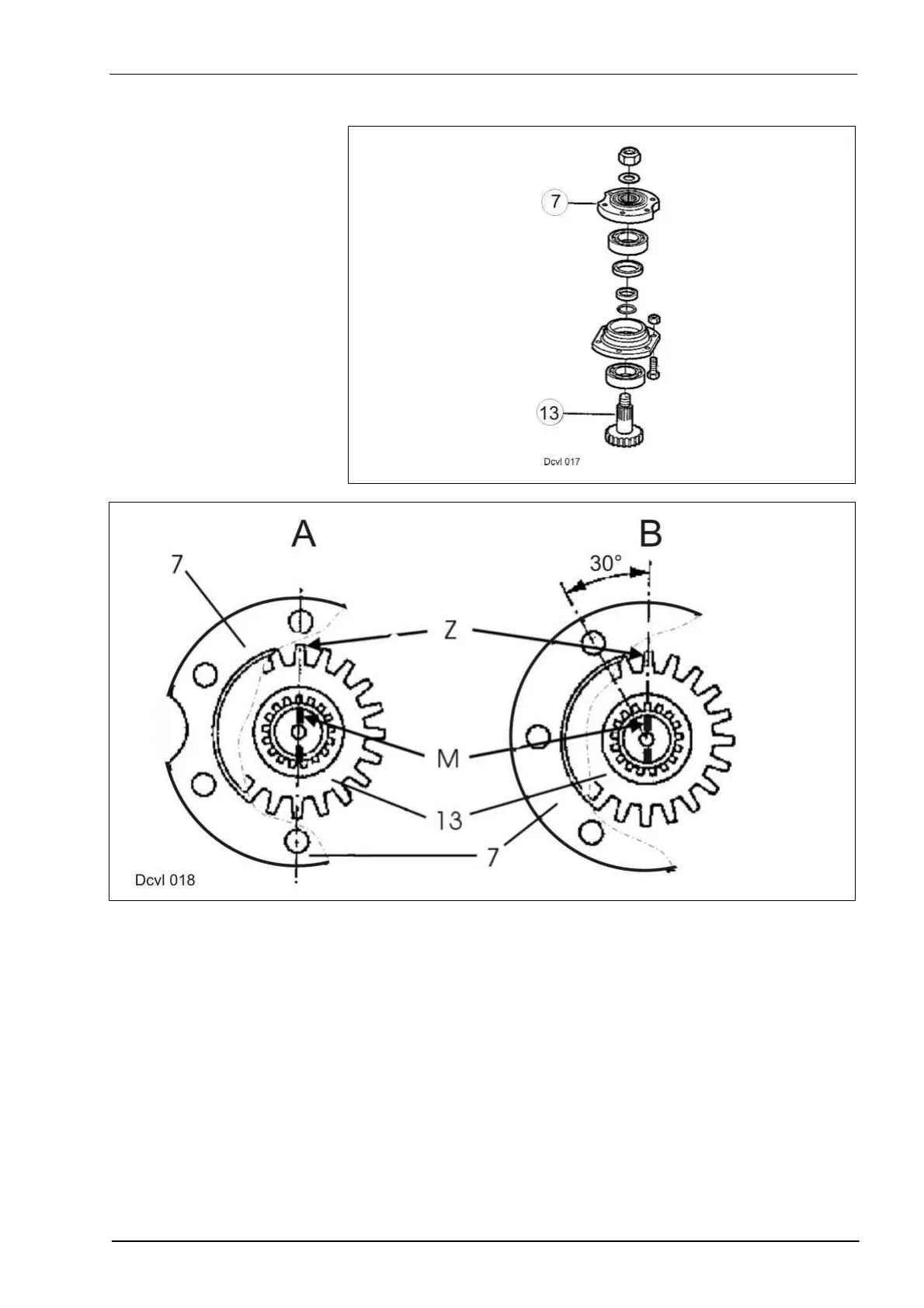 Pinion unit B The marking M on the shaft, the tooth centre Z and the centre between