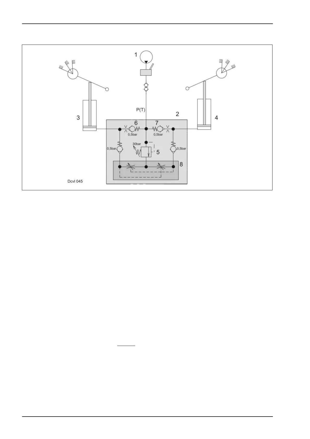 Function The volume flow of pump (1) is directed into the flow divider (2) via an