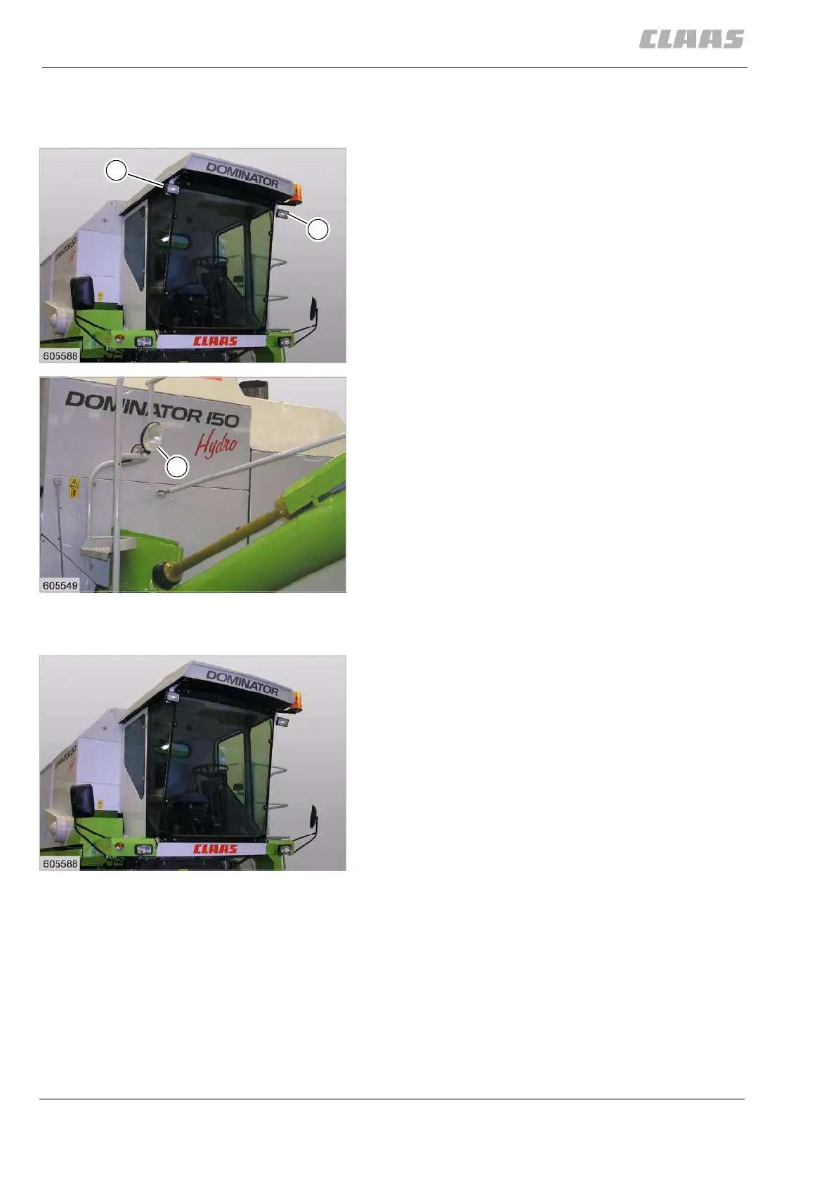 one worklight (B) on the left side of the grain tank allow