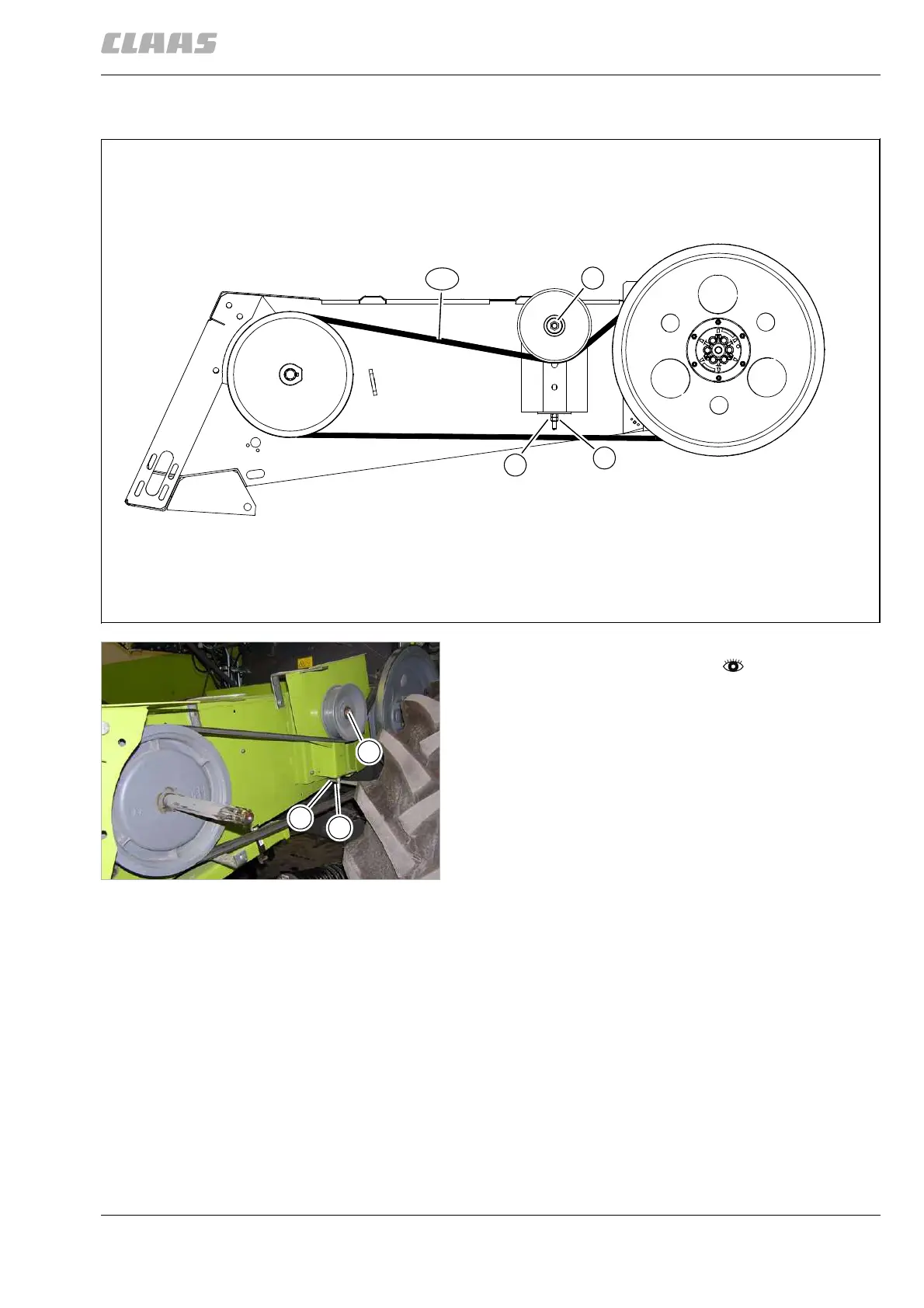 – Turn nuts (2) and (3) until the belt is tensioned.