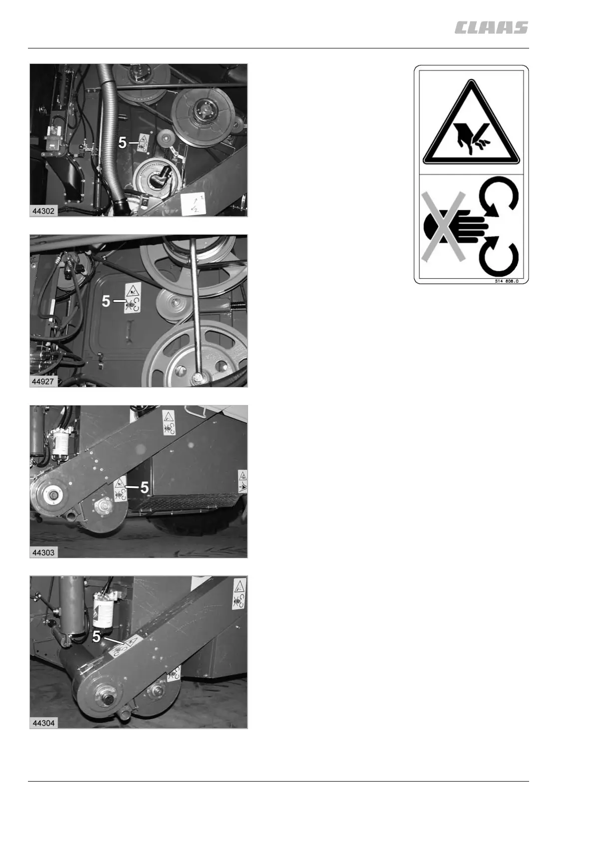 Claas LEXION 430 - Specific Safety Decal: Rotating Parts Warning