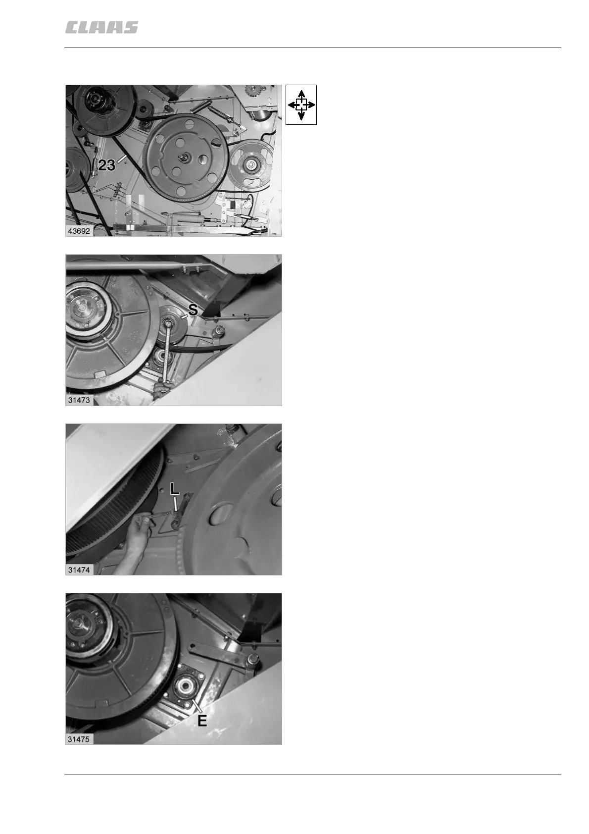 Relieve the tension of threshing drum drive belt (23).