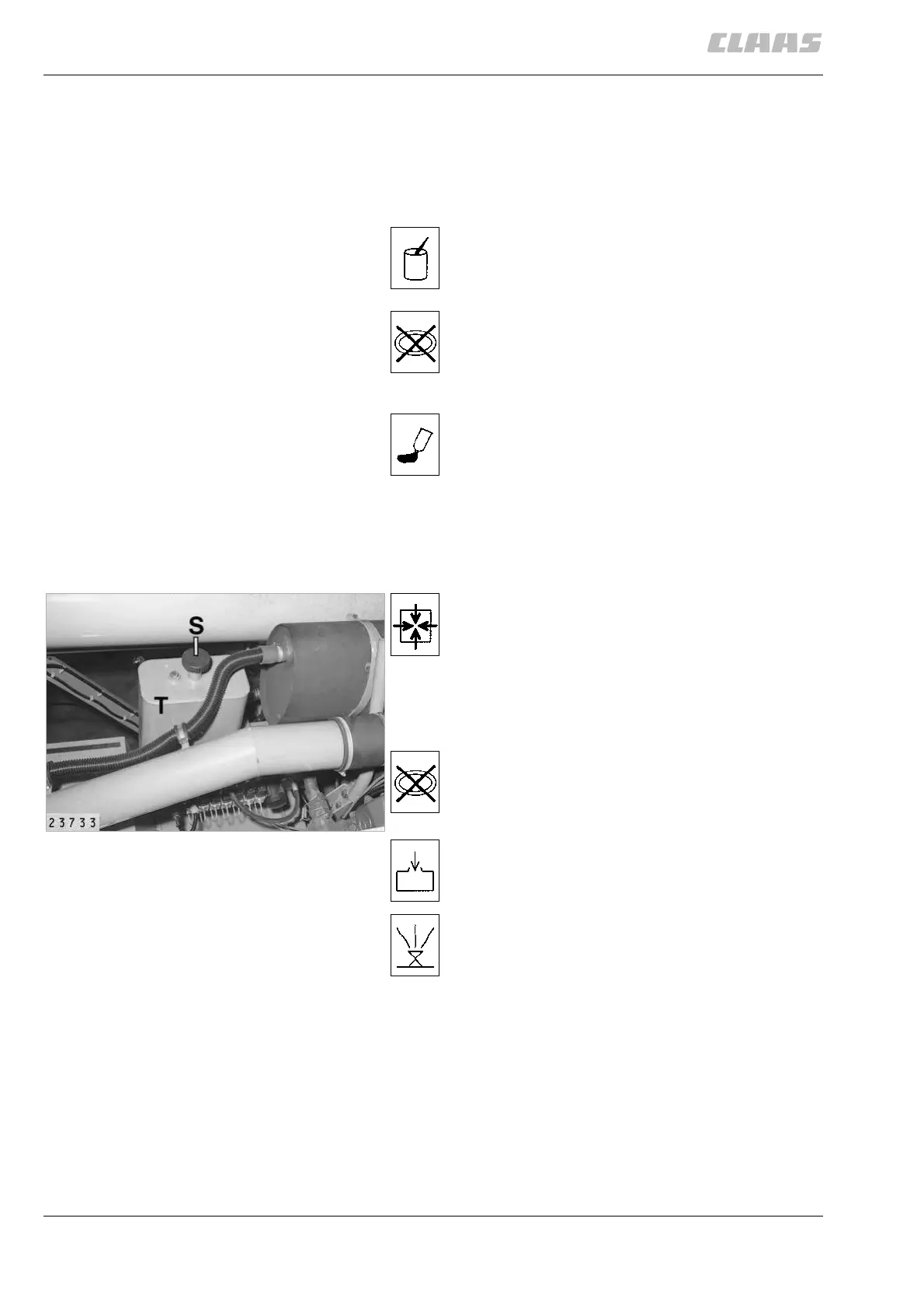 3. Fill in hydraulic oil at the filler plug (S) of tank (T)