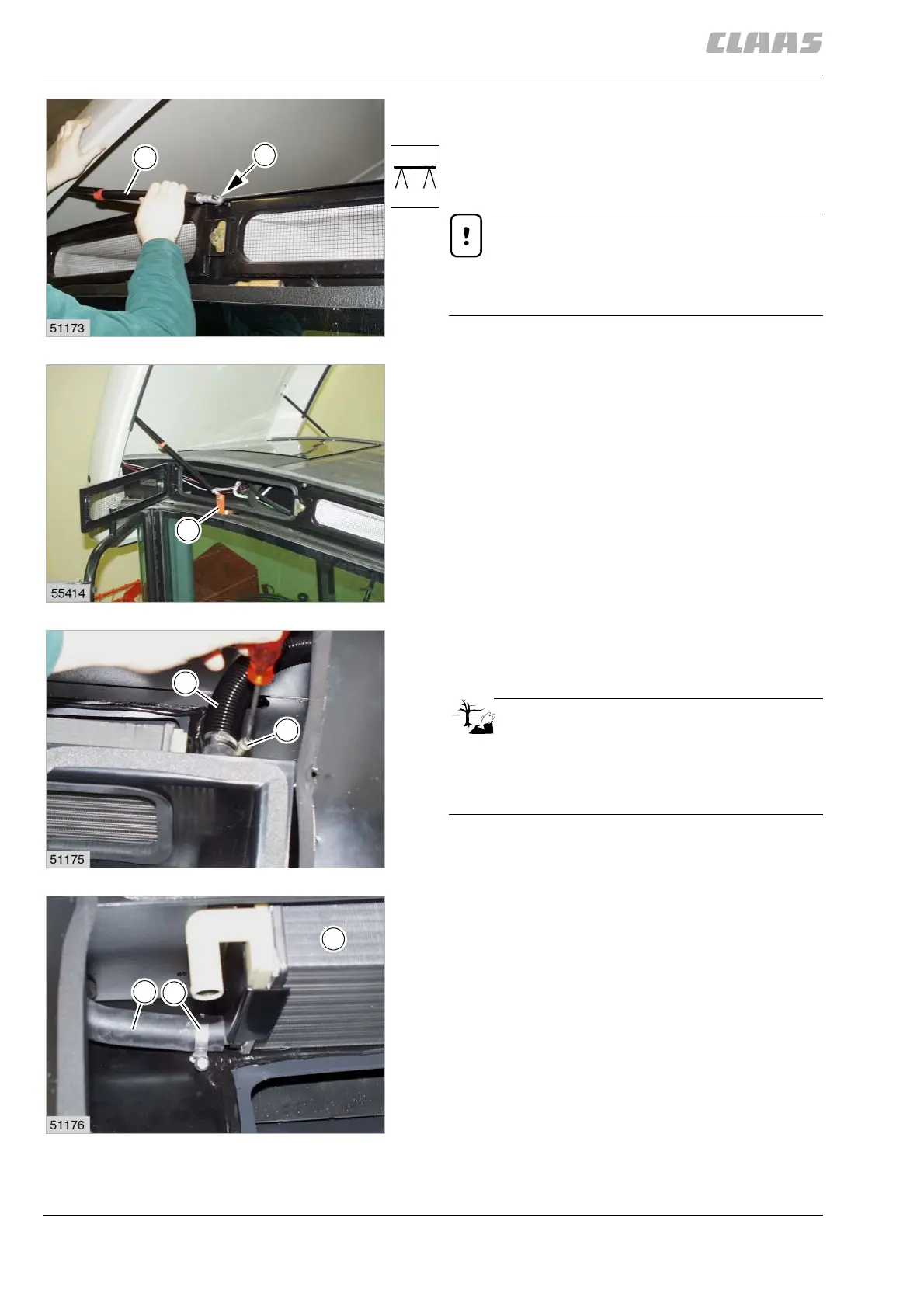 Lift the cab roof and fasten gas struts (D) with a mount-