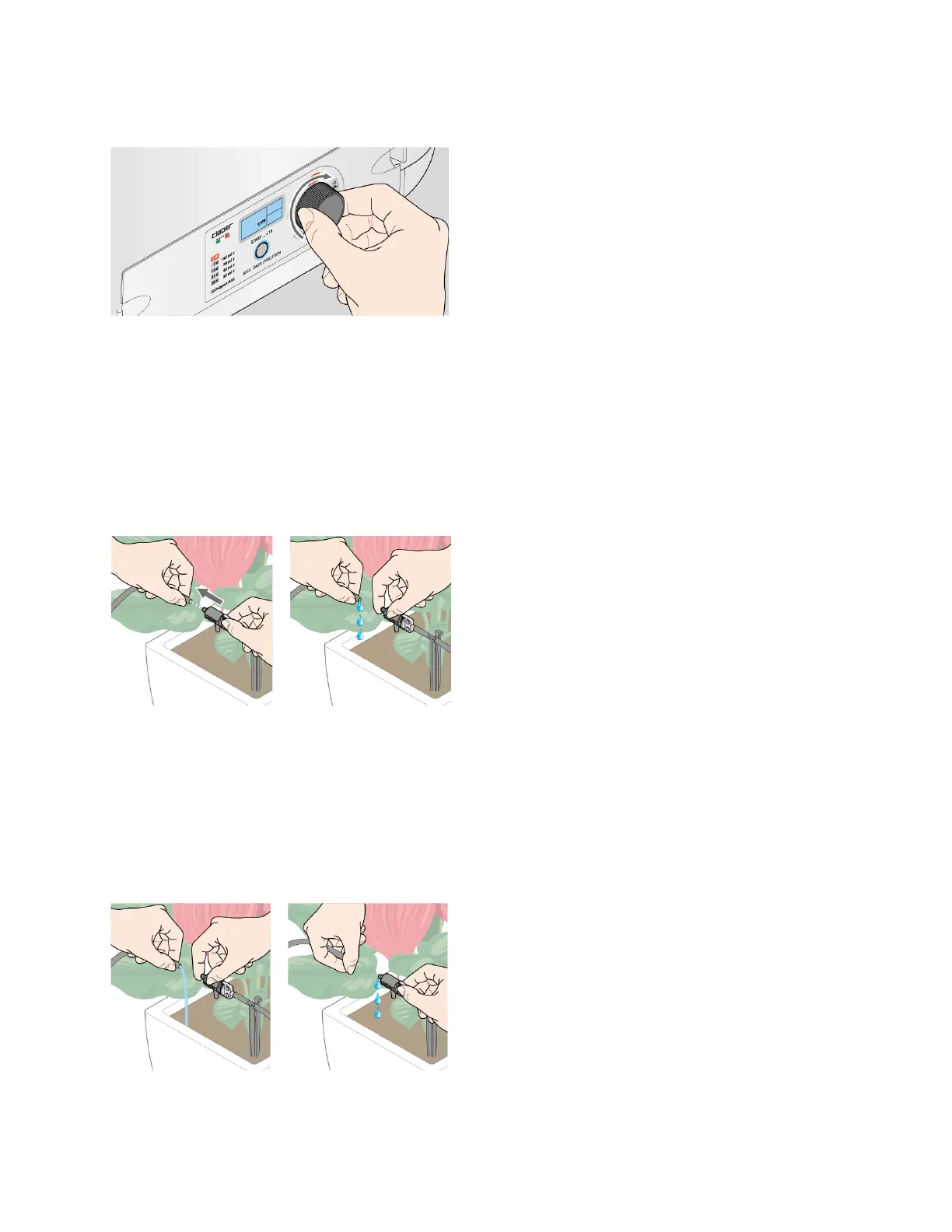 Disconnect the hose connected to the dripper halfway along the loop circuit, put your finger over one