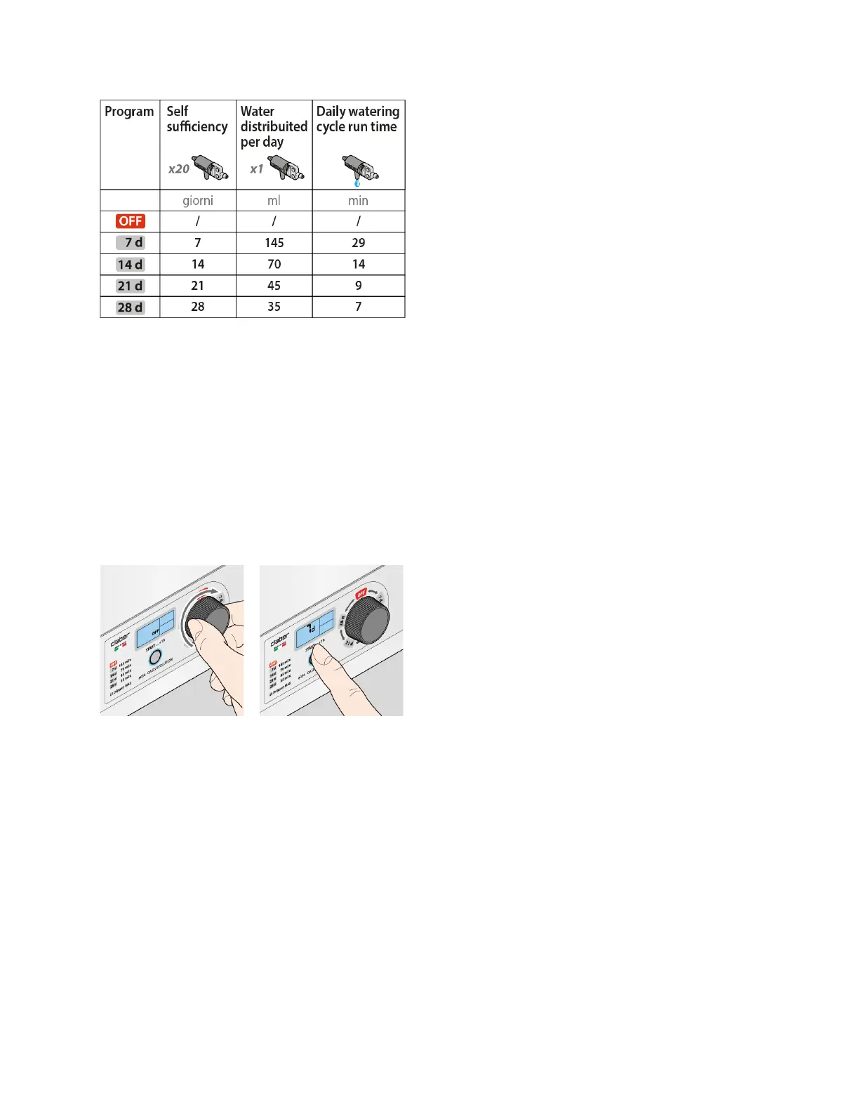 Oasis Evolution has 5 programs (4+OFF), specially designed to allow independent operation for 7, 14,