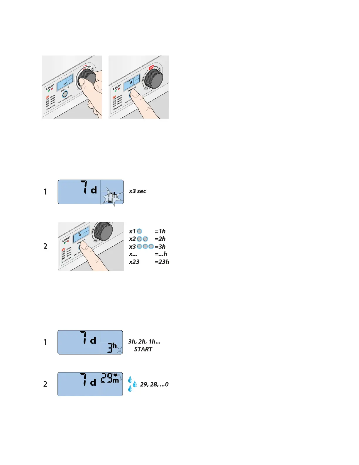 To select the desired program, turn the dial from OFF to the desired position: 7, 14, 21 or 28 days, and