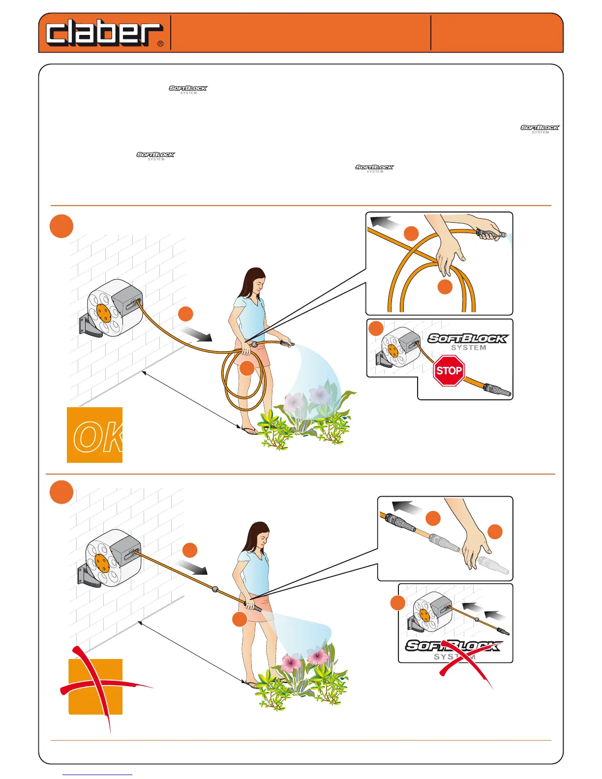 LOCKING THE HOSE IN PLACE WHILE WATERING: unwind the hose until reaching the watering spot (a), unwind another two coils of hose,