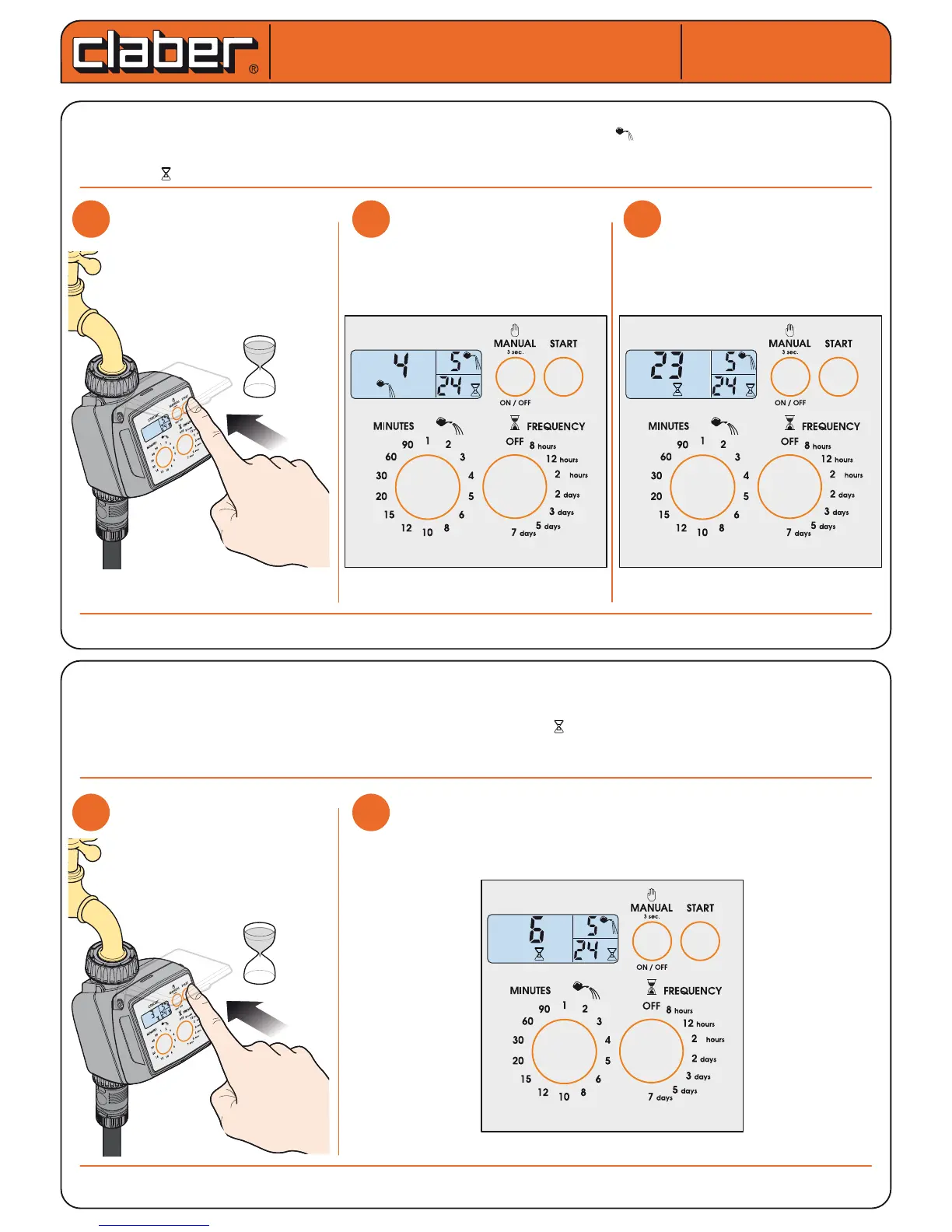 “C” shows the delay, between 1 and 23 hours, before the start of the automatic watering cycle (e.g. 6 hours). Release