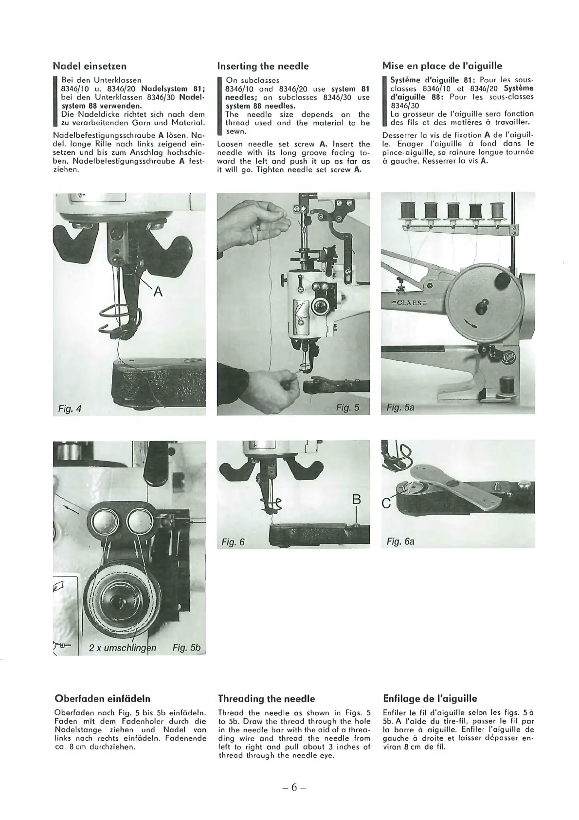 CLAES 8346 - Inserting the Sewing Needle; Threading the Upper Thread