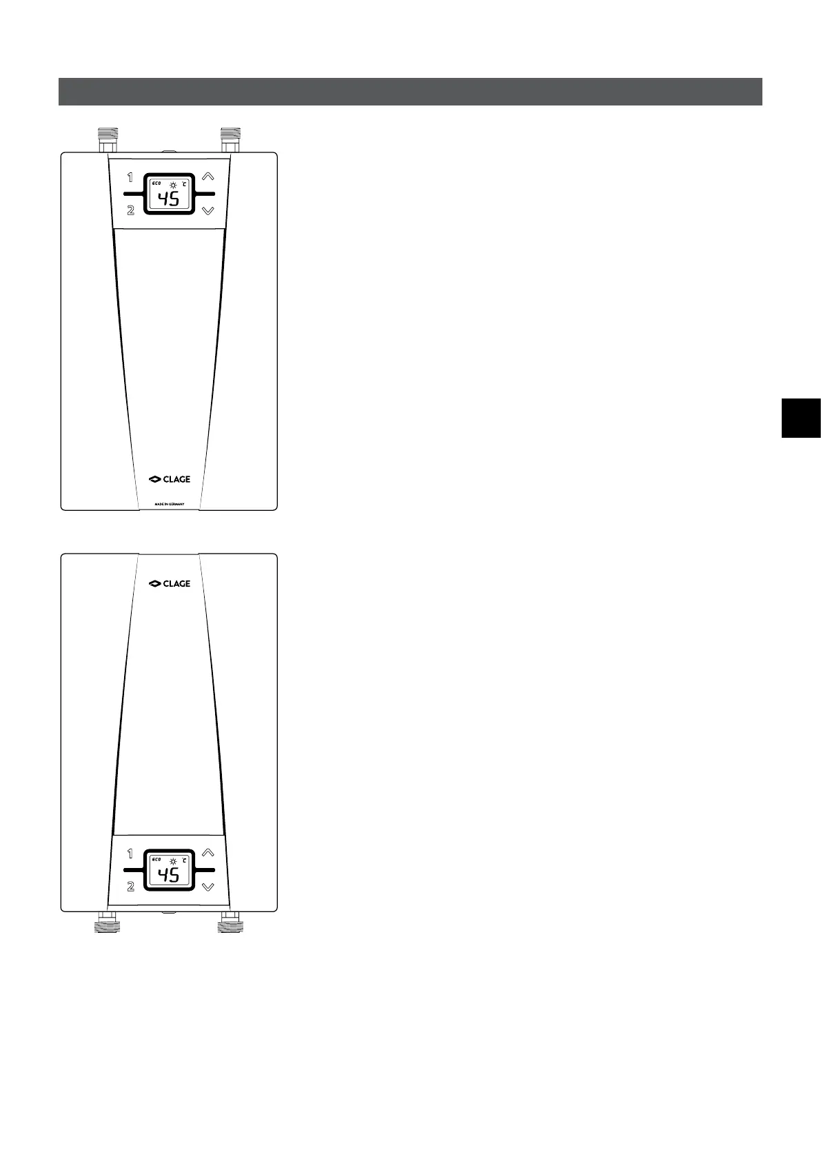 Elektroniken reglerar uteffekt utifrån vald utgående vattentemperatur, aktuell tem-