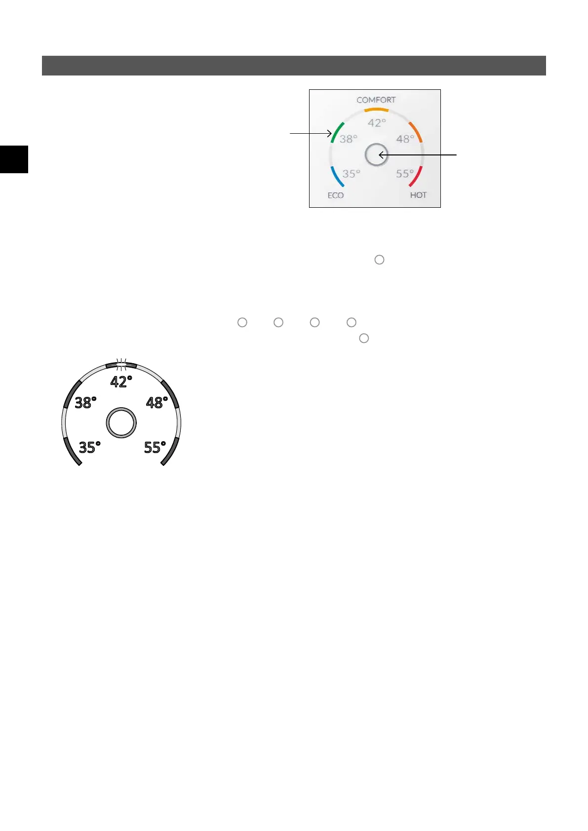 chaude : « Lavage à la main » 35 °C, « Douche » 38 °C, « Bain » 42 °C, « Cuisine » 48 °C
