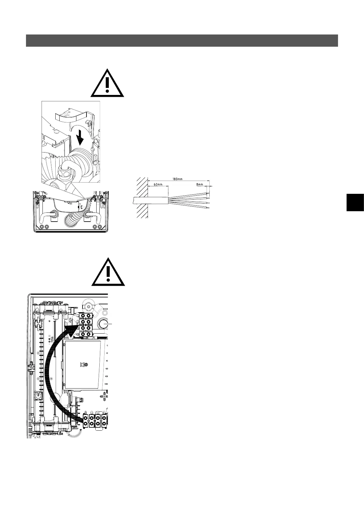 1. Odstraňte izolaci přívodního kabelu zhruba 6 cm nad výstupem ze stěny. Nasaďte
