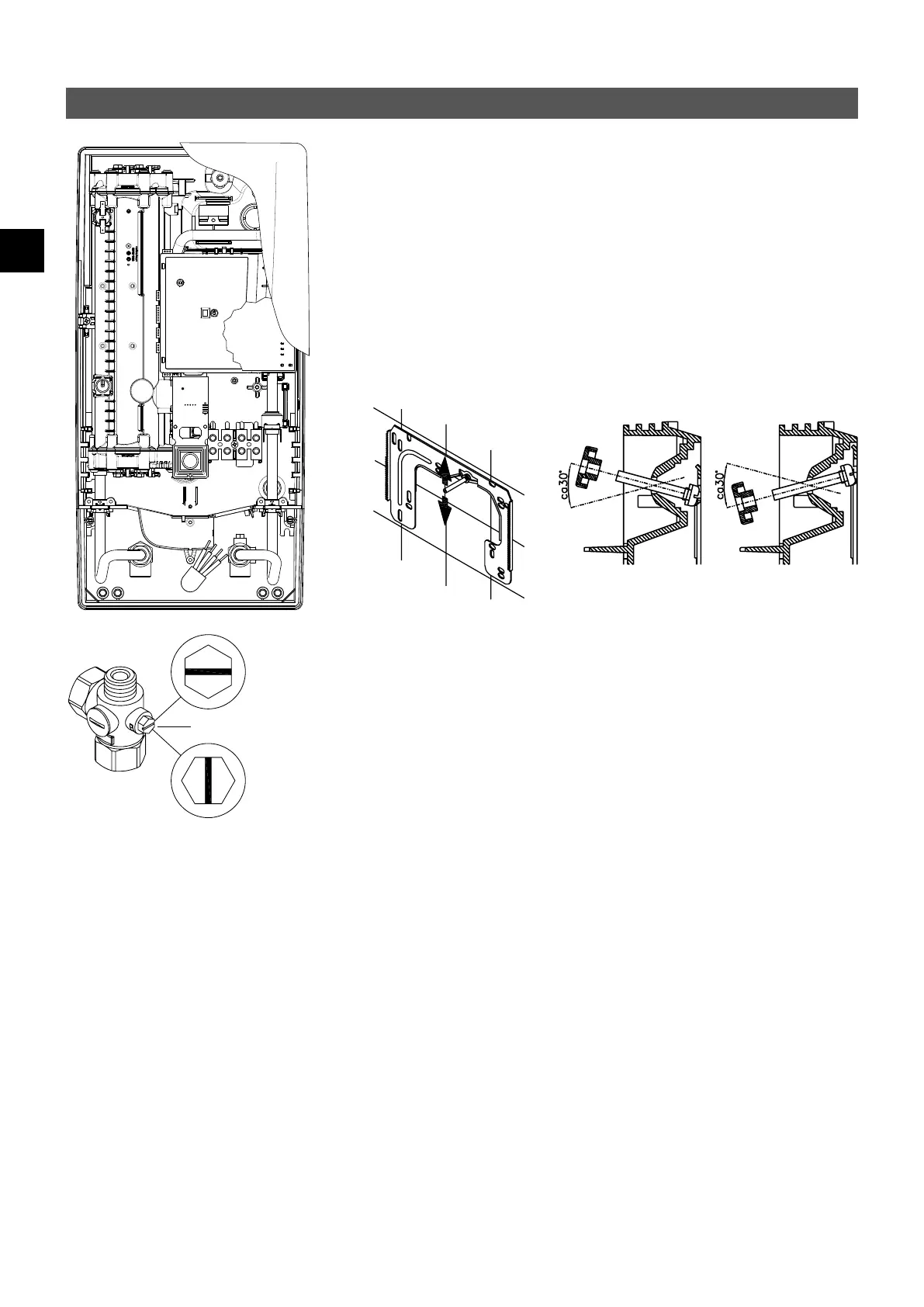 mural. Il doit cependant être possible de visser les conduites d‘eau de l‘appareil sans