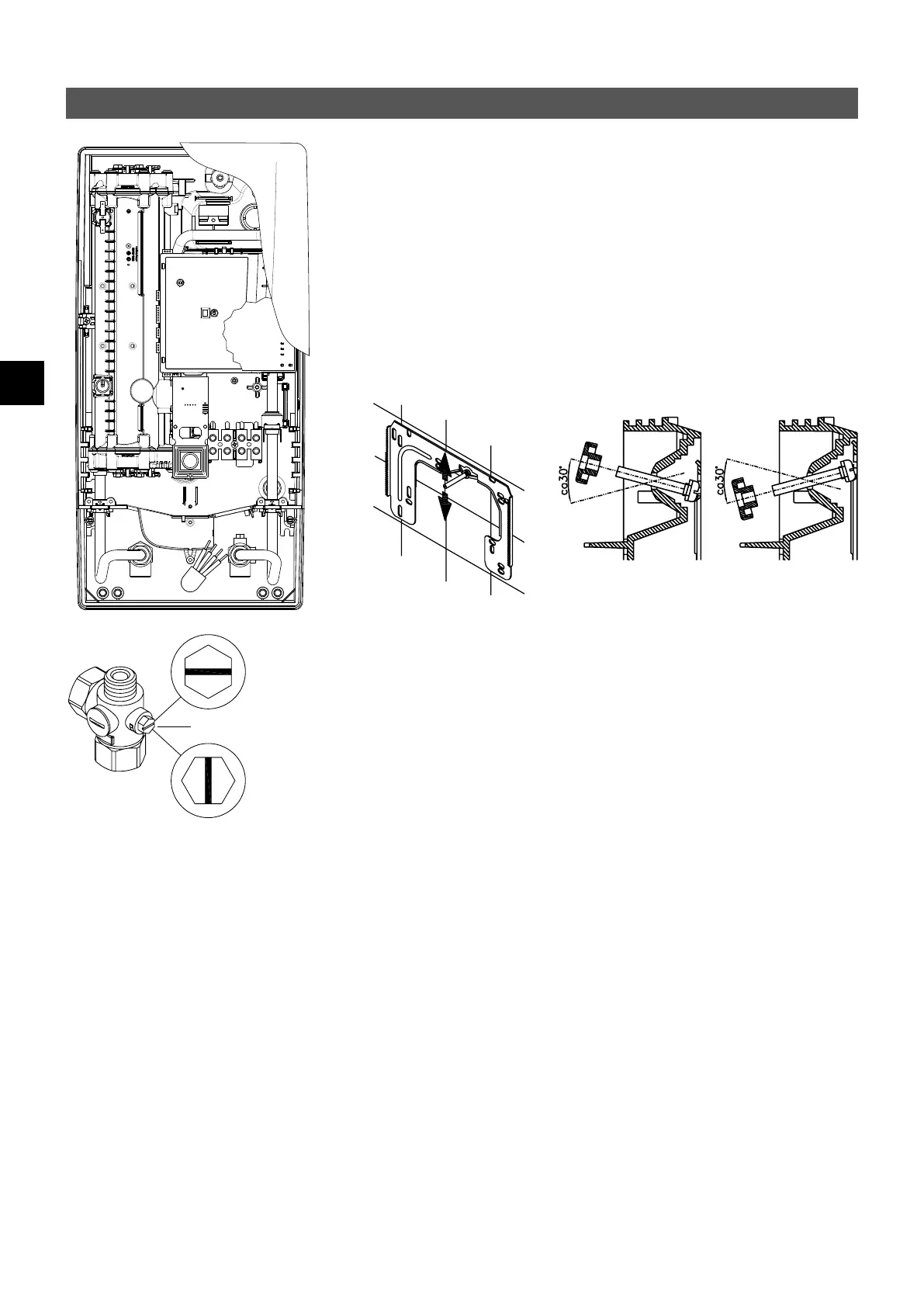 te de pared coincida con el agujero previsto en el equipo. Girando la varilla roscada