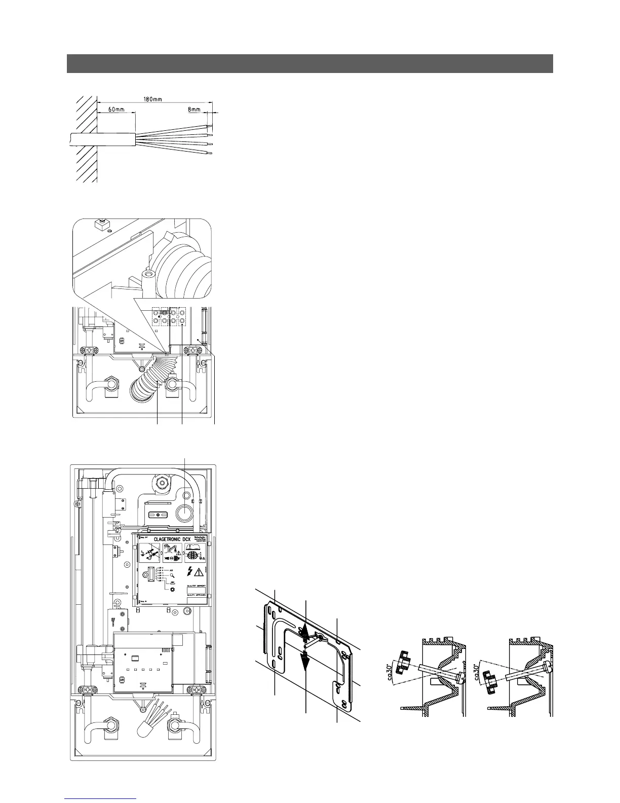 1. Usunąć izolację kabla przyłącza prądu ok 6 cm od punktu wyjścia ze ściany. Nasunąć