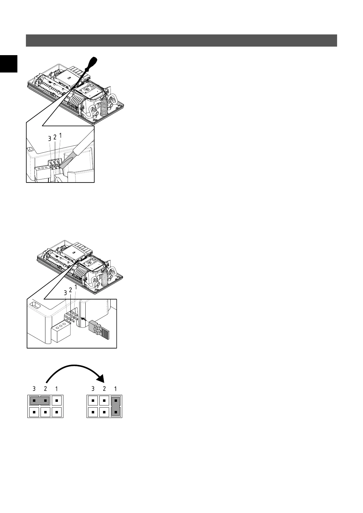 3. Brücke von der Leistungselektronik abziehen und auf Position »1« umstecken