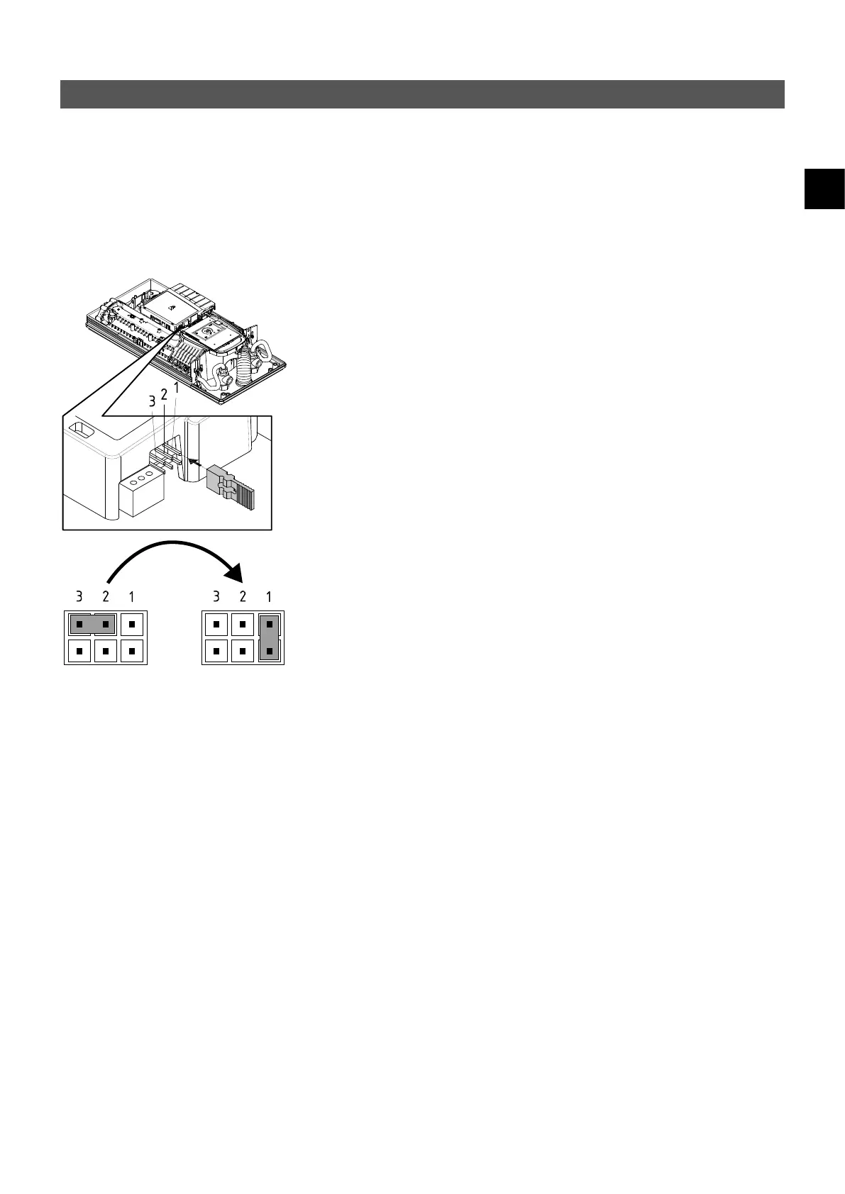 3. Take the jumper off the power electronics and change to position “1” (see picture).