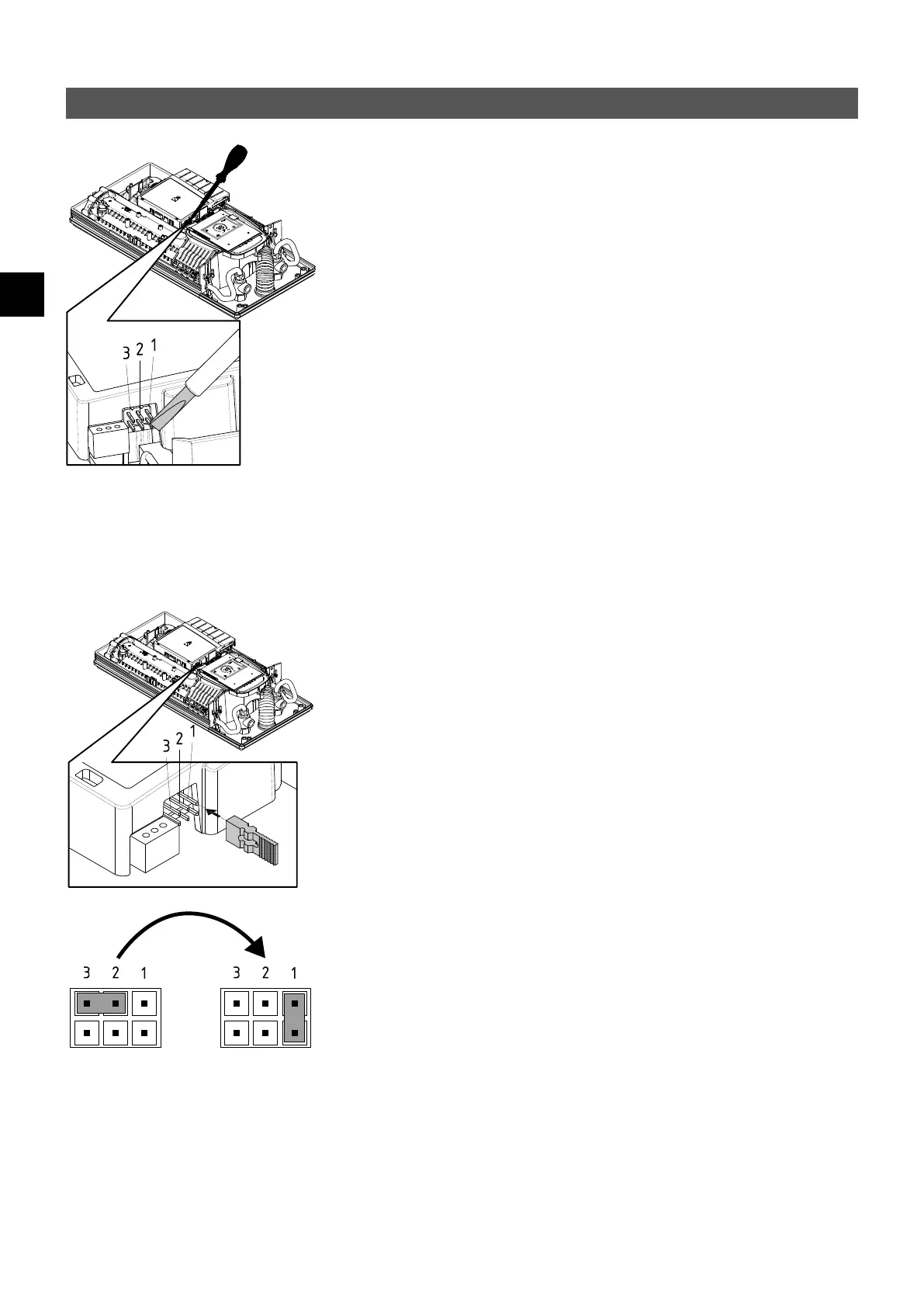 3. Verwijder de brug van de vermogenselektronica en verplaats deze naar positie “1”