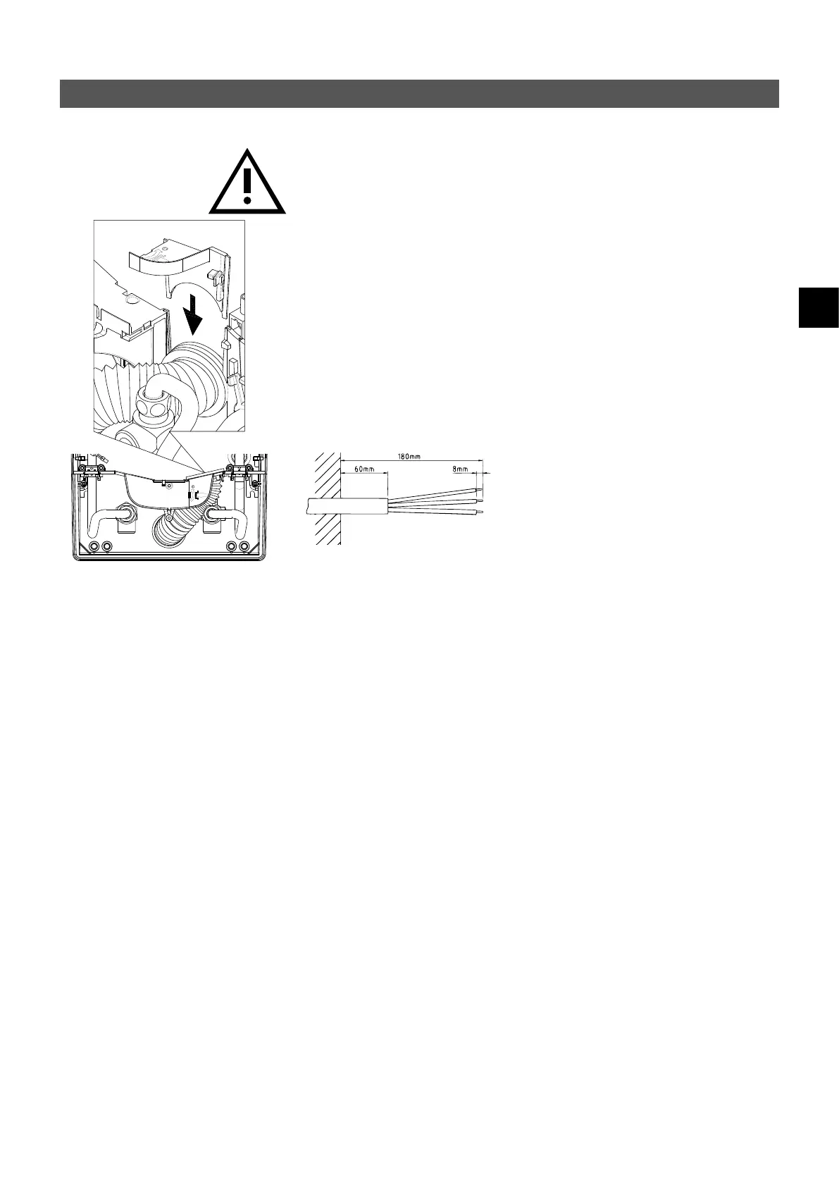 1. Isole o cabo de ligação aproximadamente 6 cm acima da saída da parede. Insira a