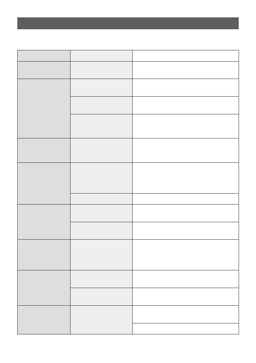 Ta tabela umożliwia odnalezienie i usunięcie przyczyny ewentualnie występującej usterki.