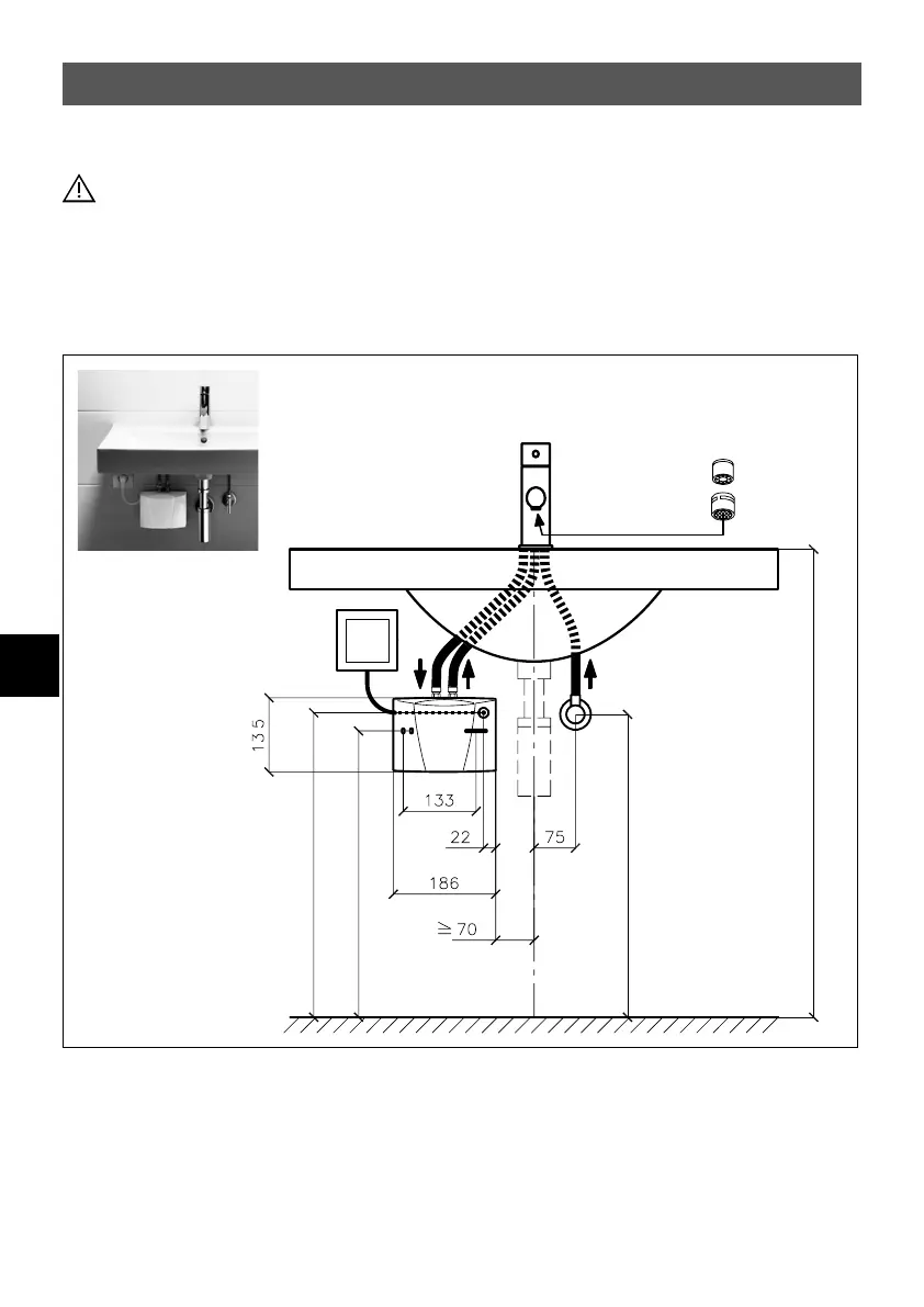 ”Trykkløs (öppen) installation med armatur för trycklösa varmvattenberedare” (måttuppgifter i mm)