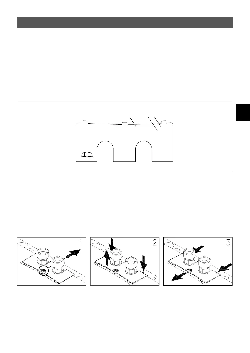 1. Przesunąć osłonę w kierunku uchwytu ściennego, naciskając na żłobkowanie.