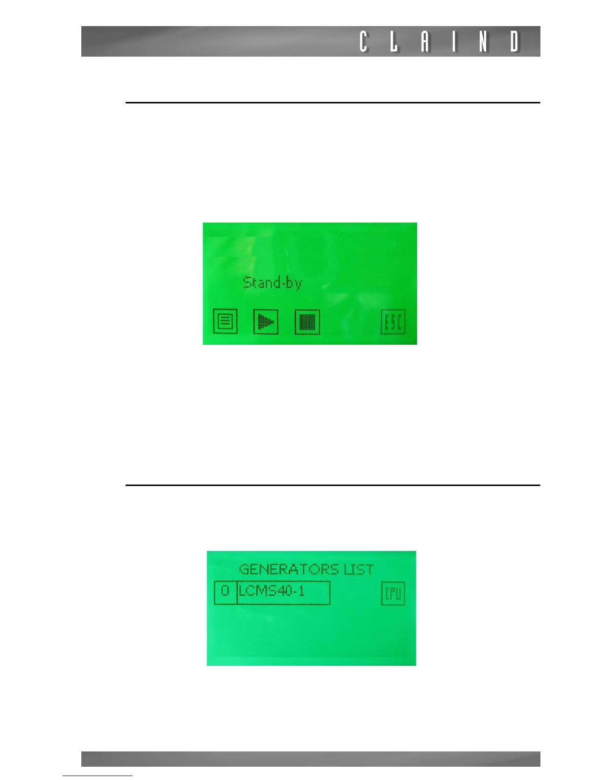After the LOGO page is shortly displayed, the GENERATORS LIST page appears