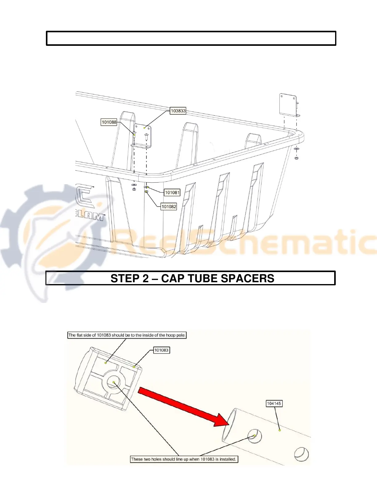 A. Insert Cap Tube Spacers #101083 into the ends of the Hoop Poles #104145 (see photos below).