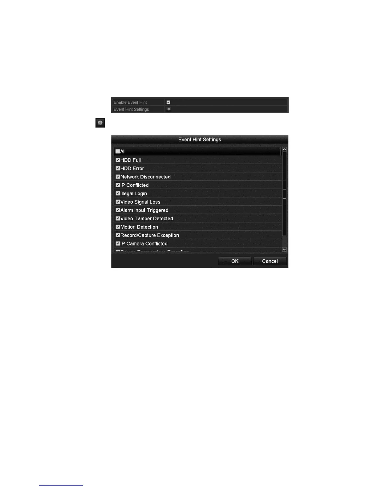 When an alarm is triggered, the local monitor (VGA, HDMI, or BNC monitor)