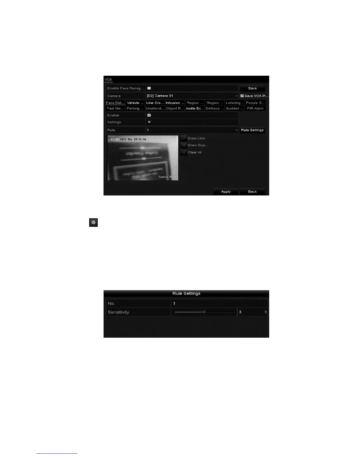 3. Set the VCA detection to Face Detection, and then select the Enable