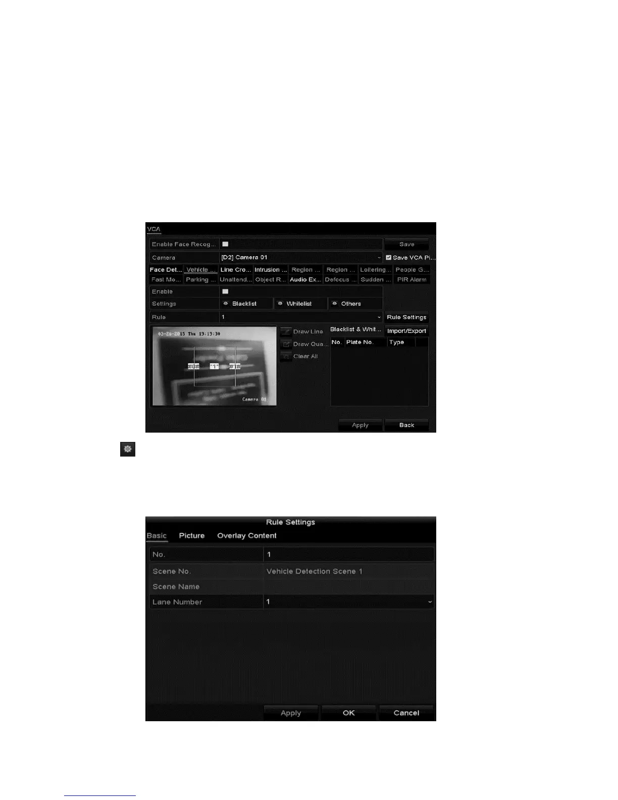 3. Set the VCA detection to Vehicle Detection, and then select the Enable