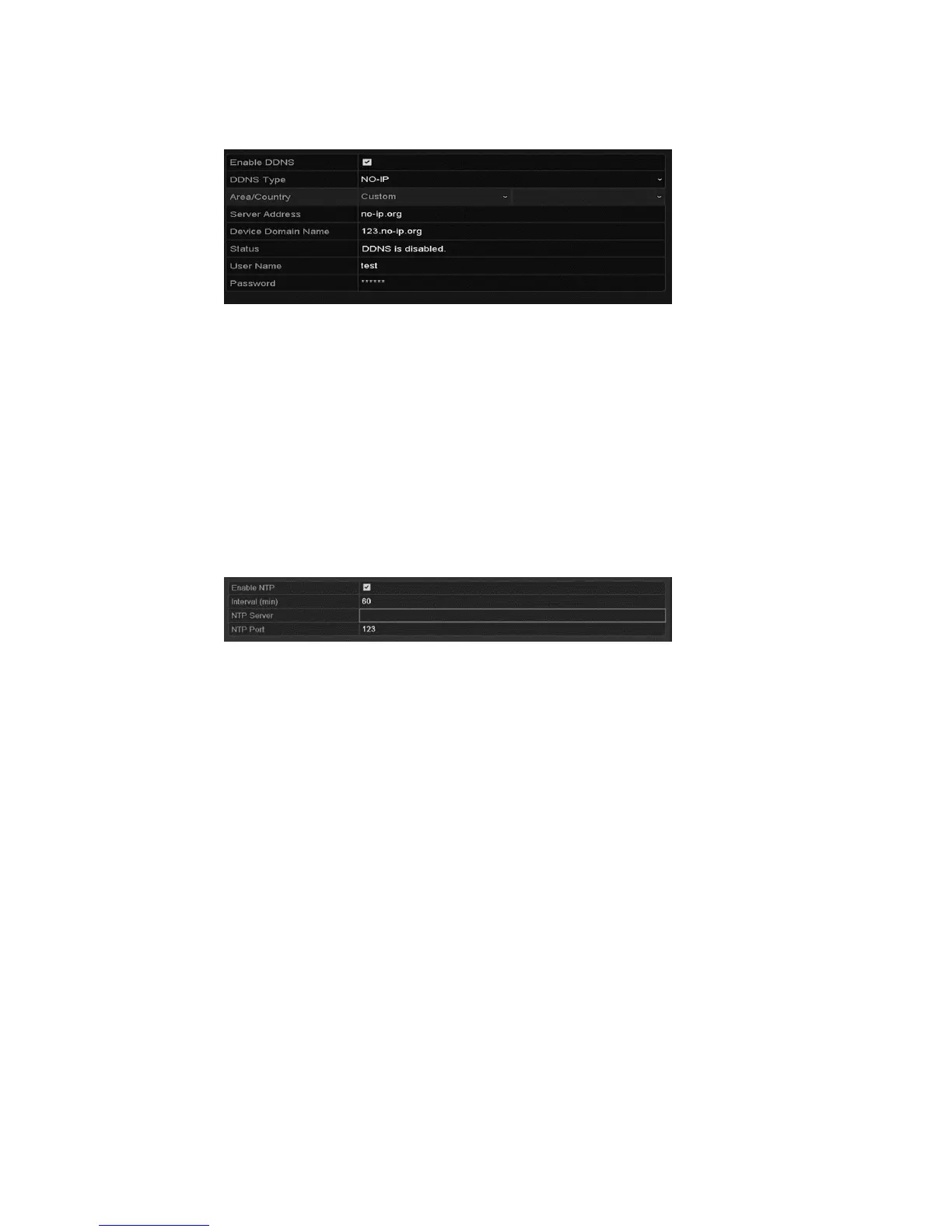 NTP Server: IP address of NTP server.