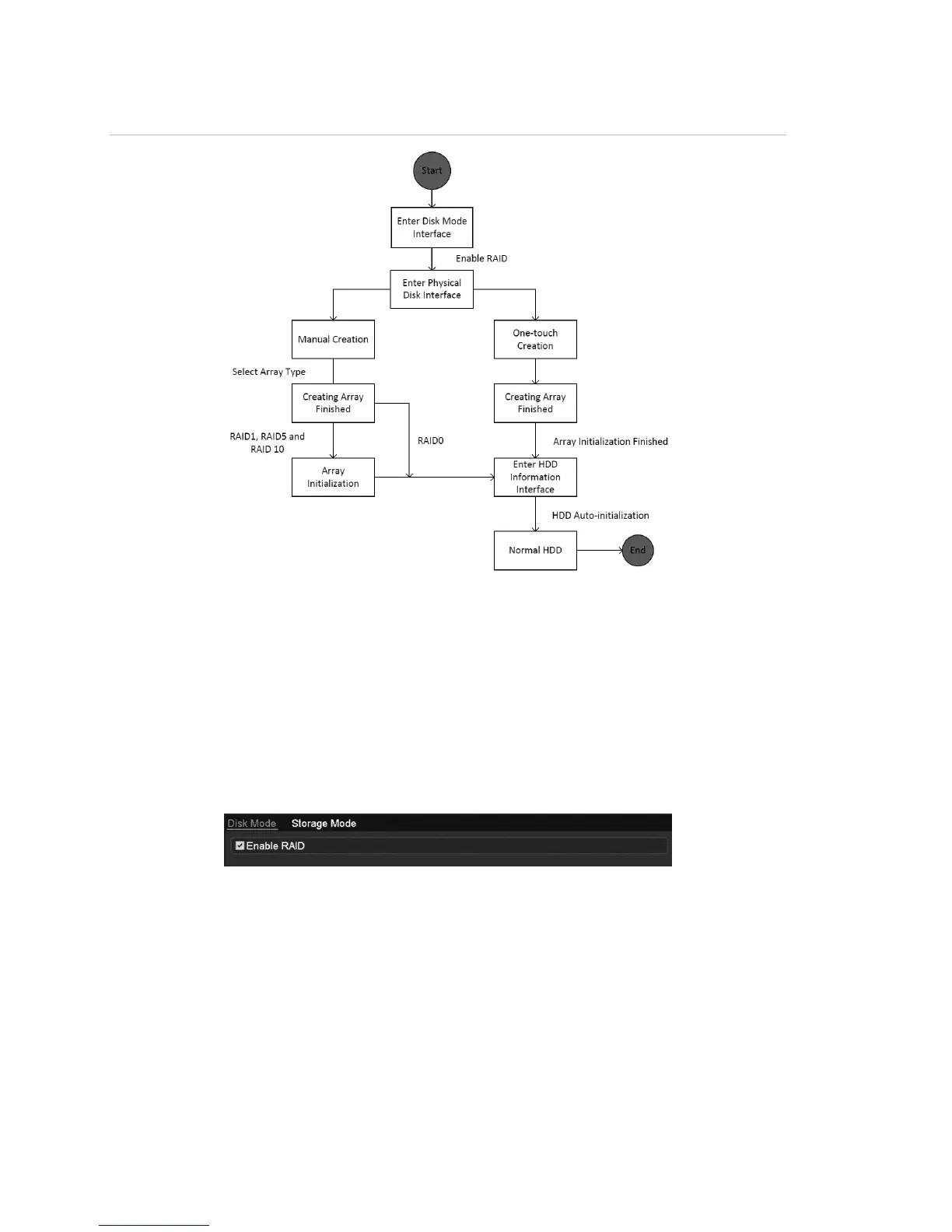 Enable RAID to allow disk array creation, enable RAID with the startup Wizard,