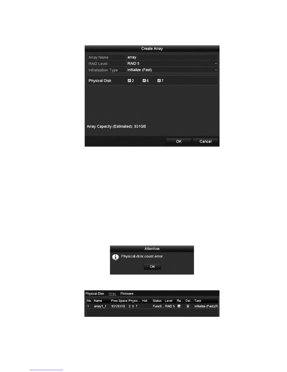 requirement of the RAID level, the error dialog displays.