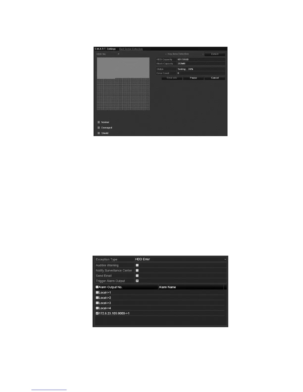 You can configure the HDD error alarms when the HDD status is Uninitialized or
