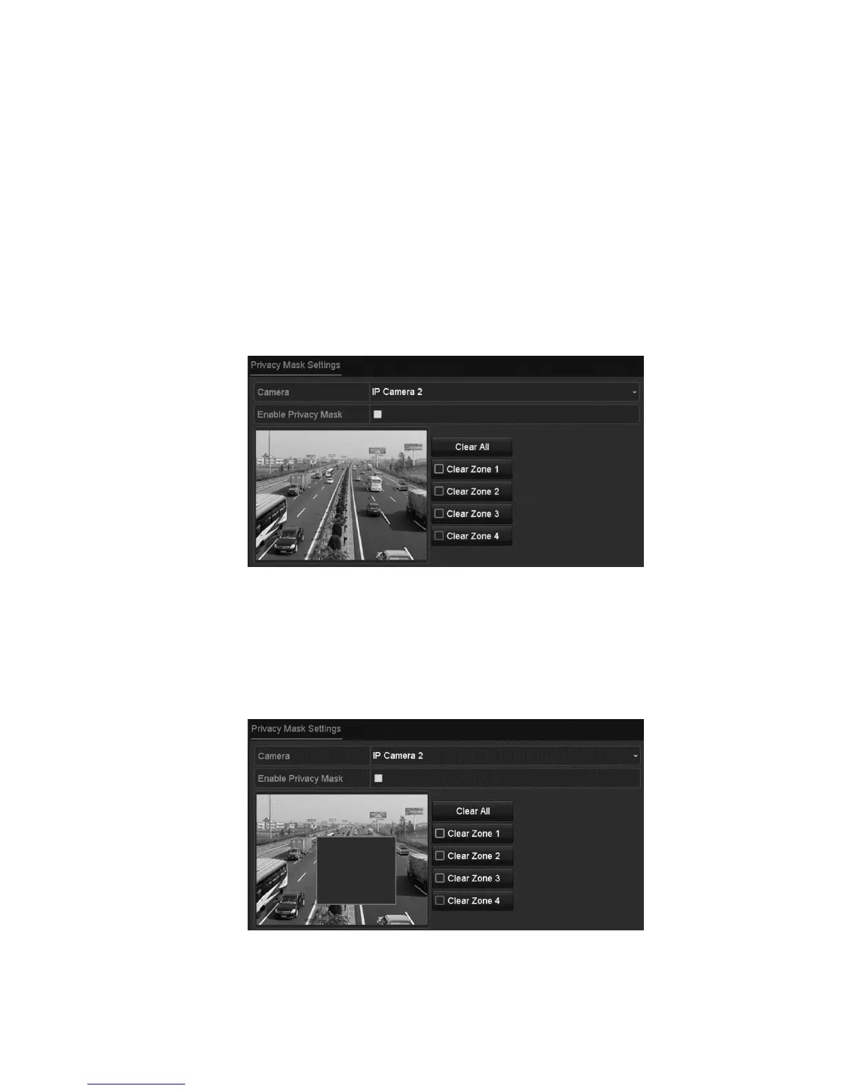 Note: You can clear a privacy mask zone by clicking its corresponding button.
