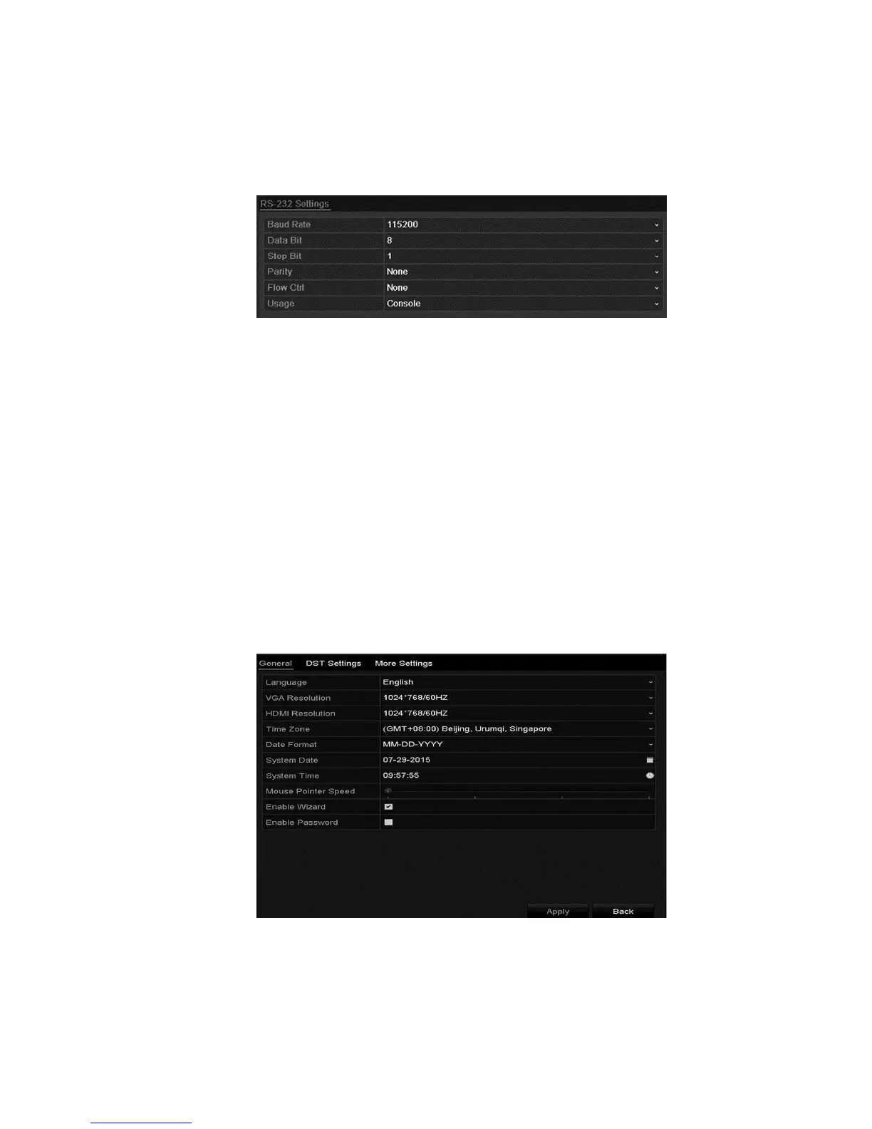 1. Browse to the RS-232 Settings interface.