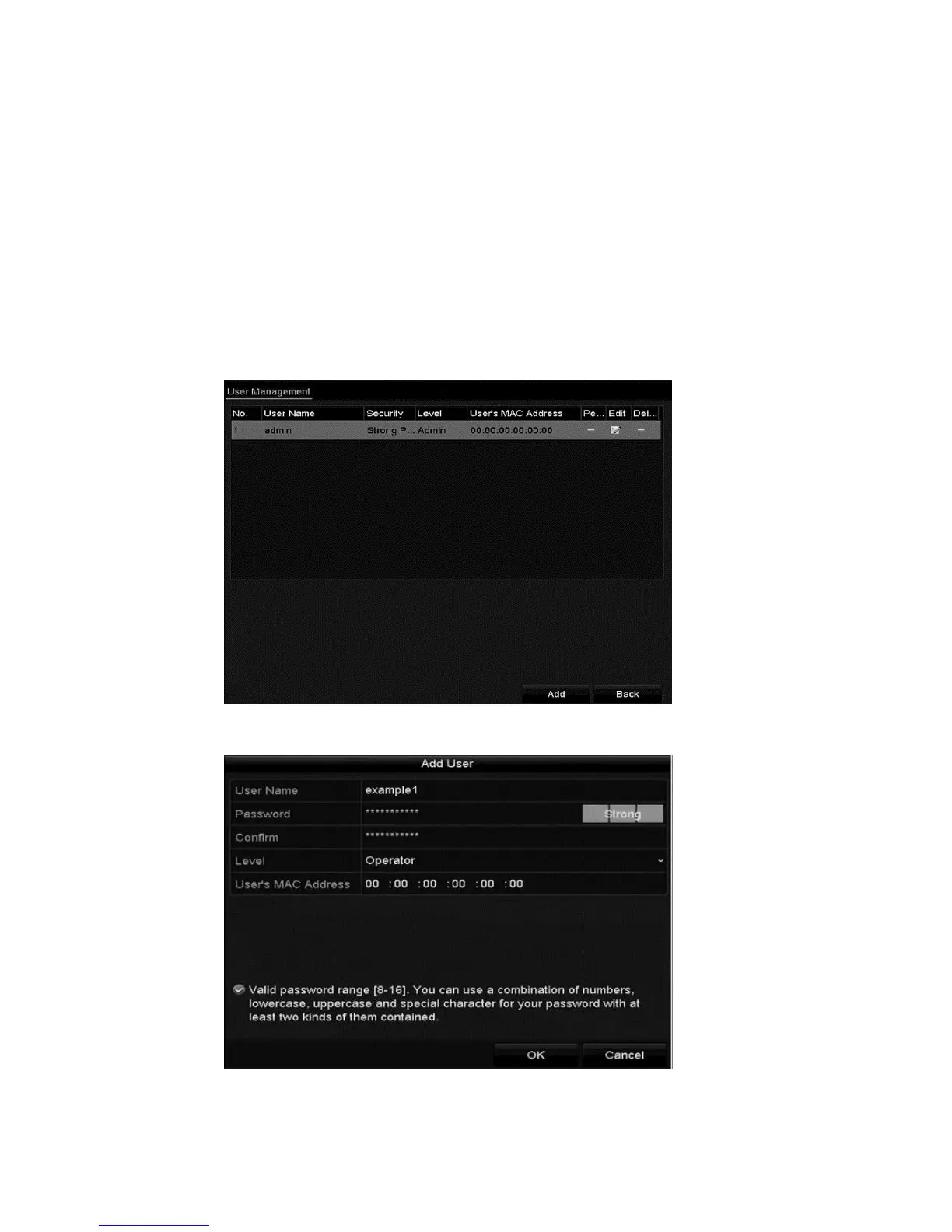There is a default account in the NVR. The Administrator user name is