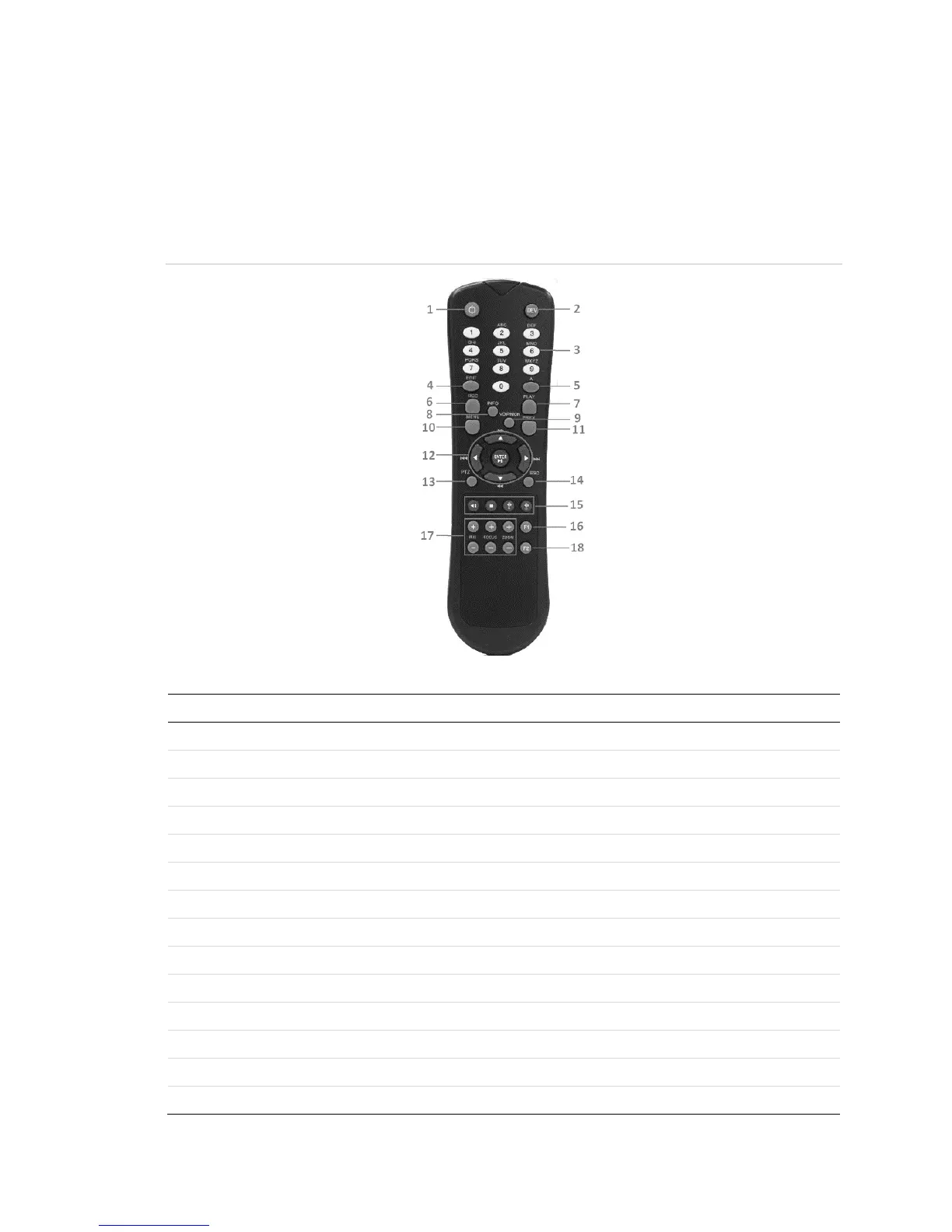 The included IR remote controls the NVR, shown below. The keys on the remote