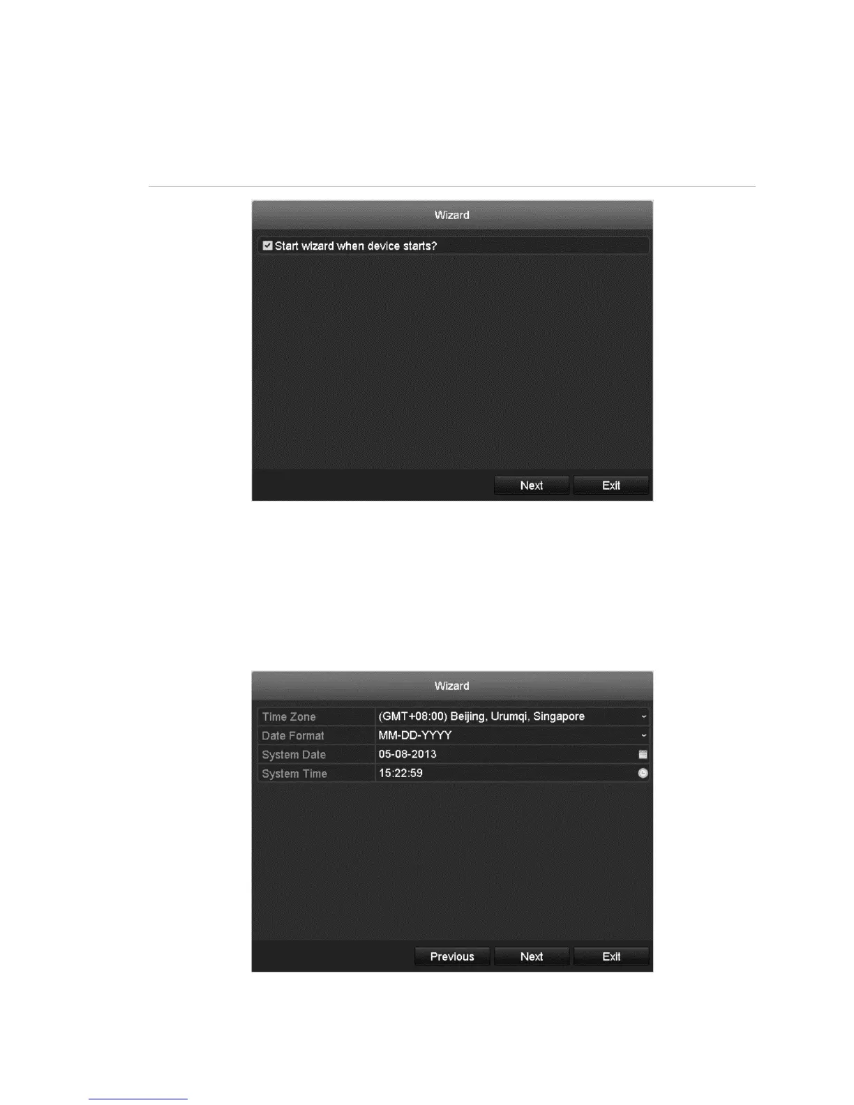 By default, the Wizard starts once the NVR loads, as shown in Figure 15.
