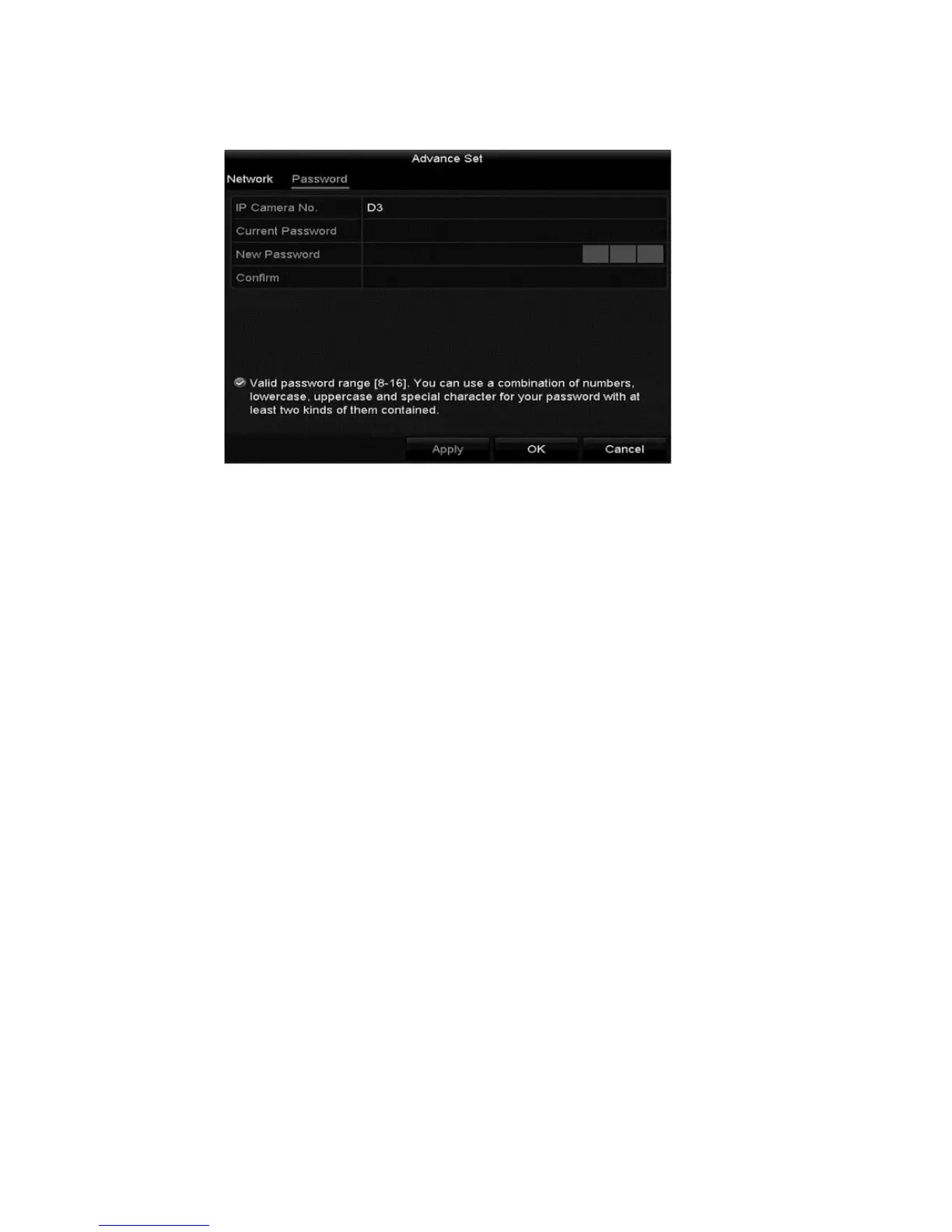 2. Edit the network information and password for the camera.