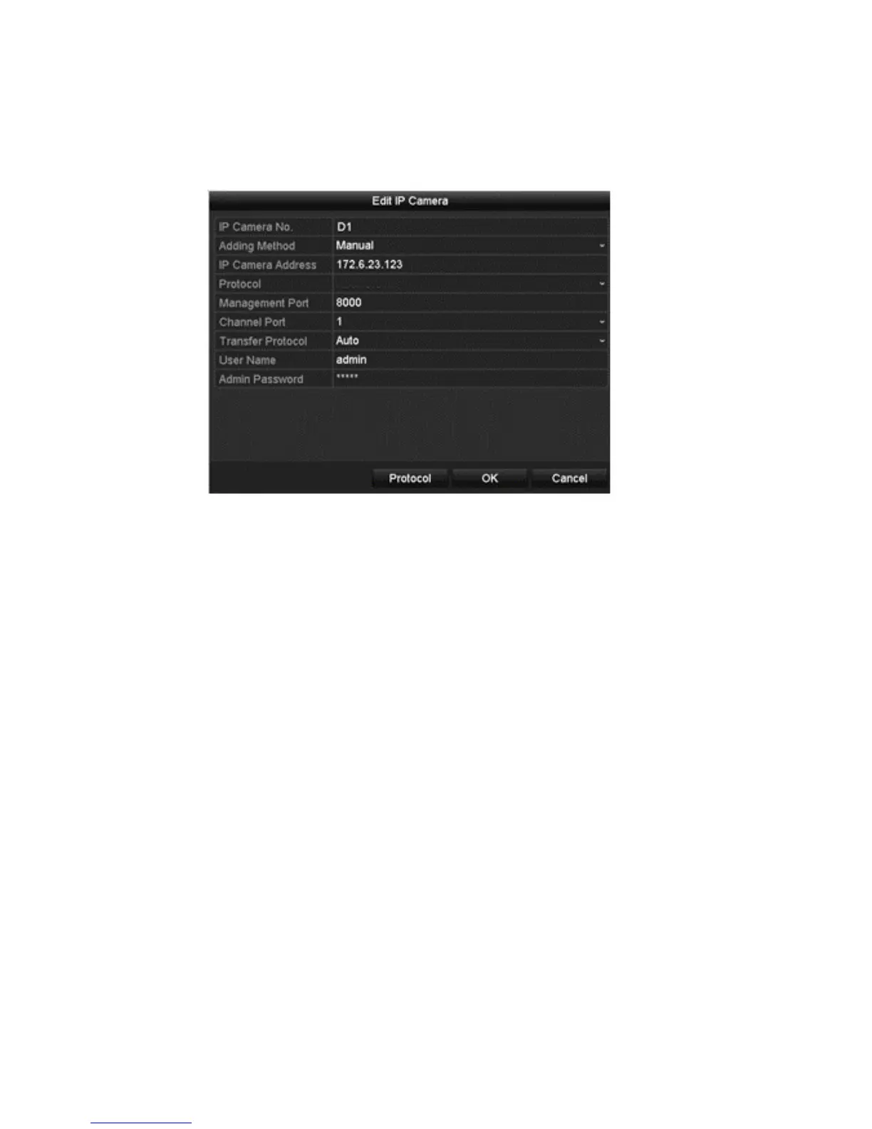 Enter the IP address, the user name and password, and then click OK.