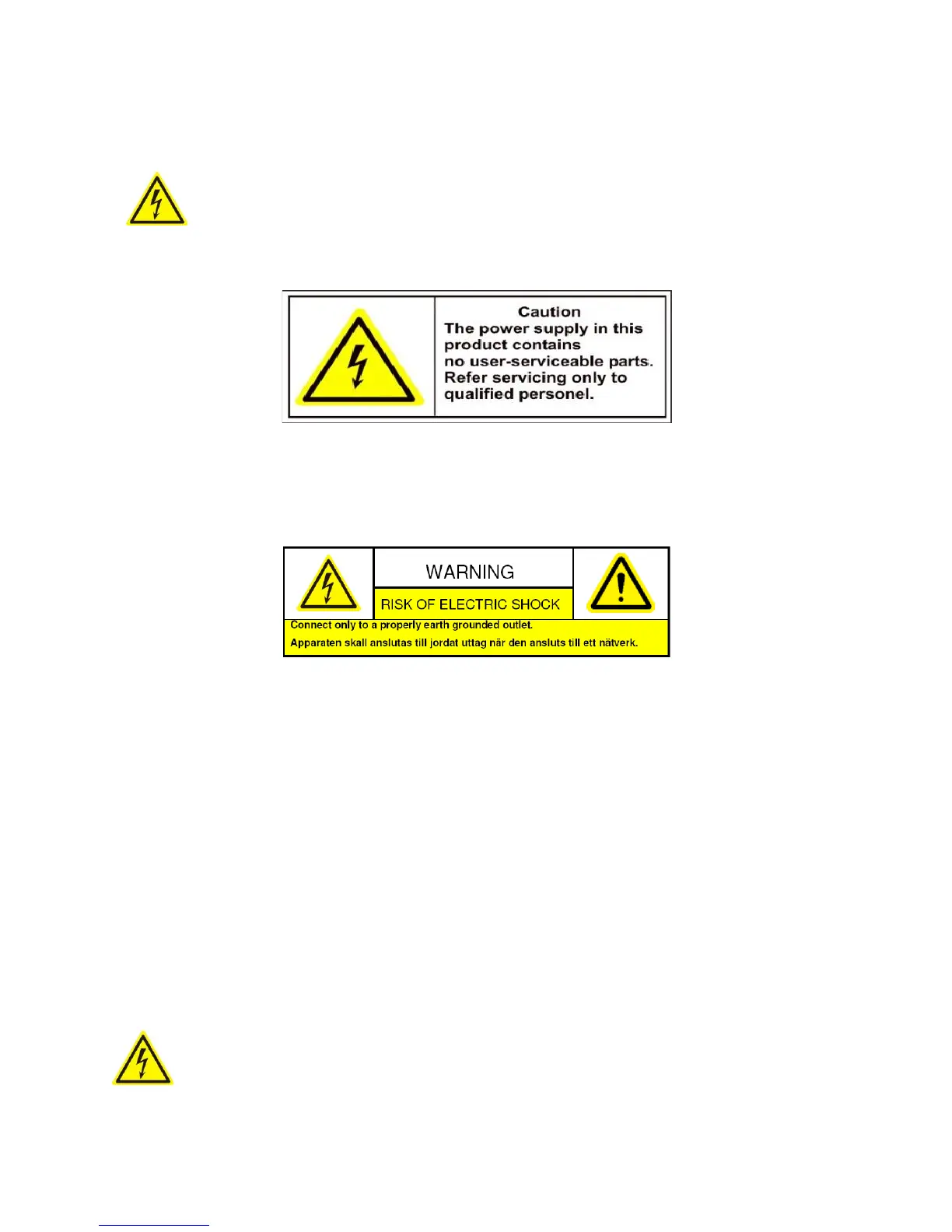 Power supply hazardous voltage: AC mains voltages are present within the power
