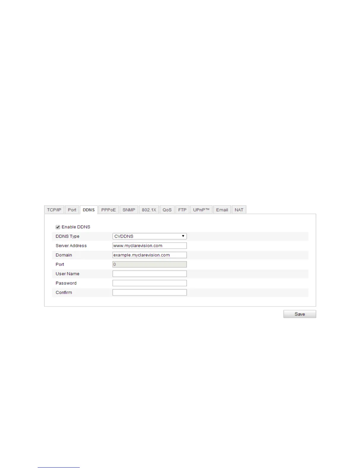 1. Enter Server Address of CVDDNS (e.g. myclarevision.com).