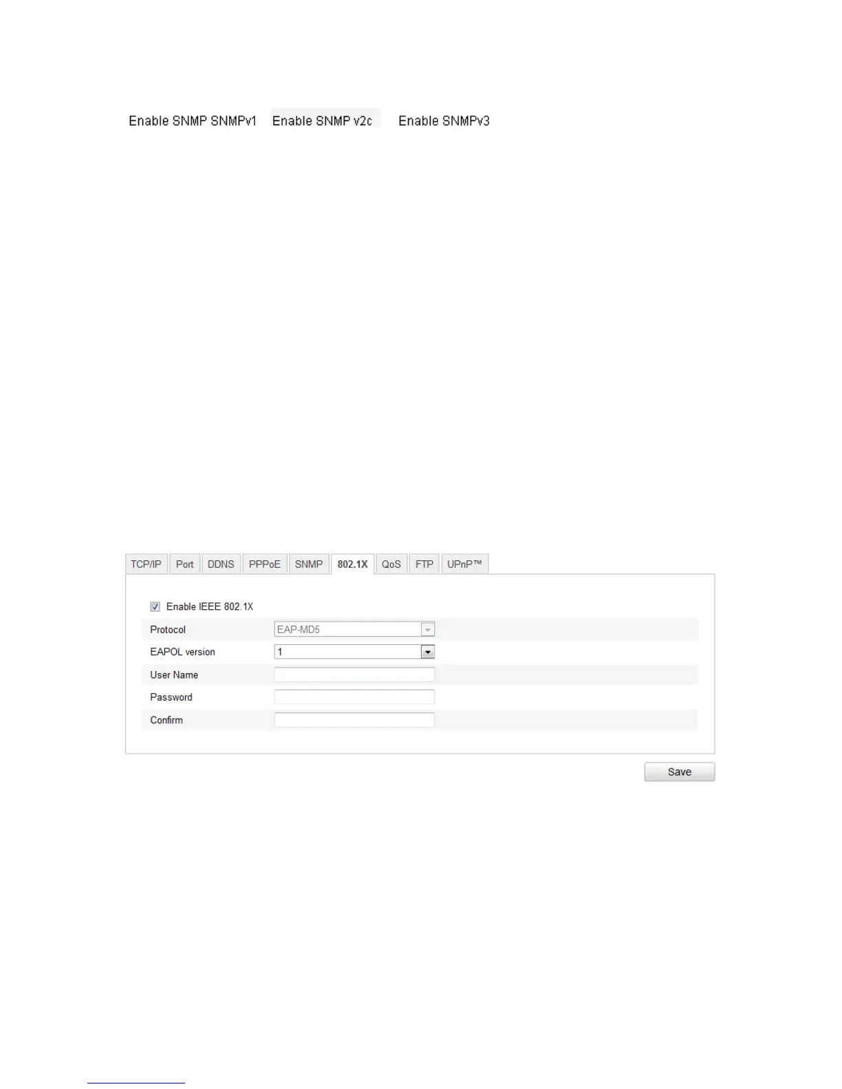 Configuration > Camera Configuration > Network > 802.1X