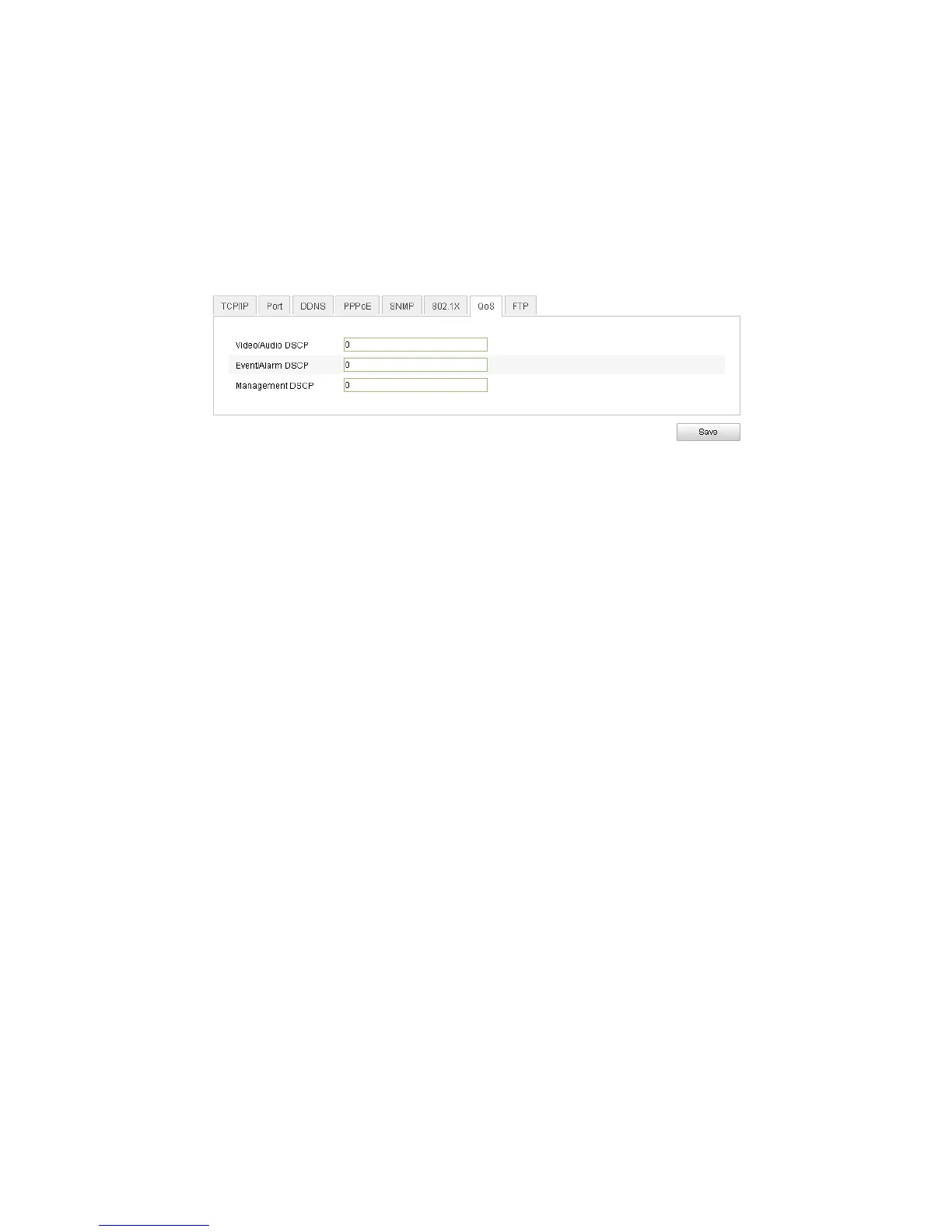 2. Configure the QoS settings, including video/audio DSCP, event/alarm DSCP, and