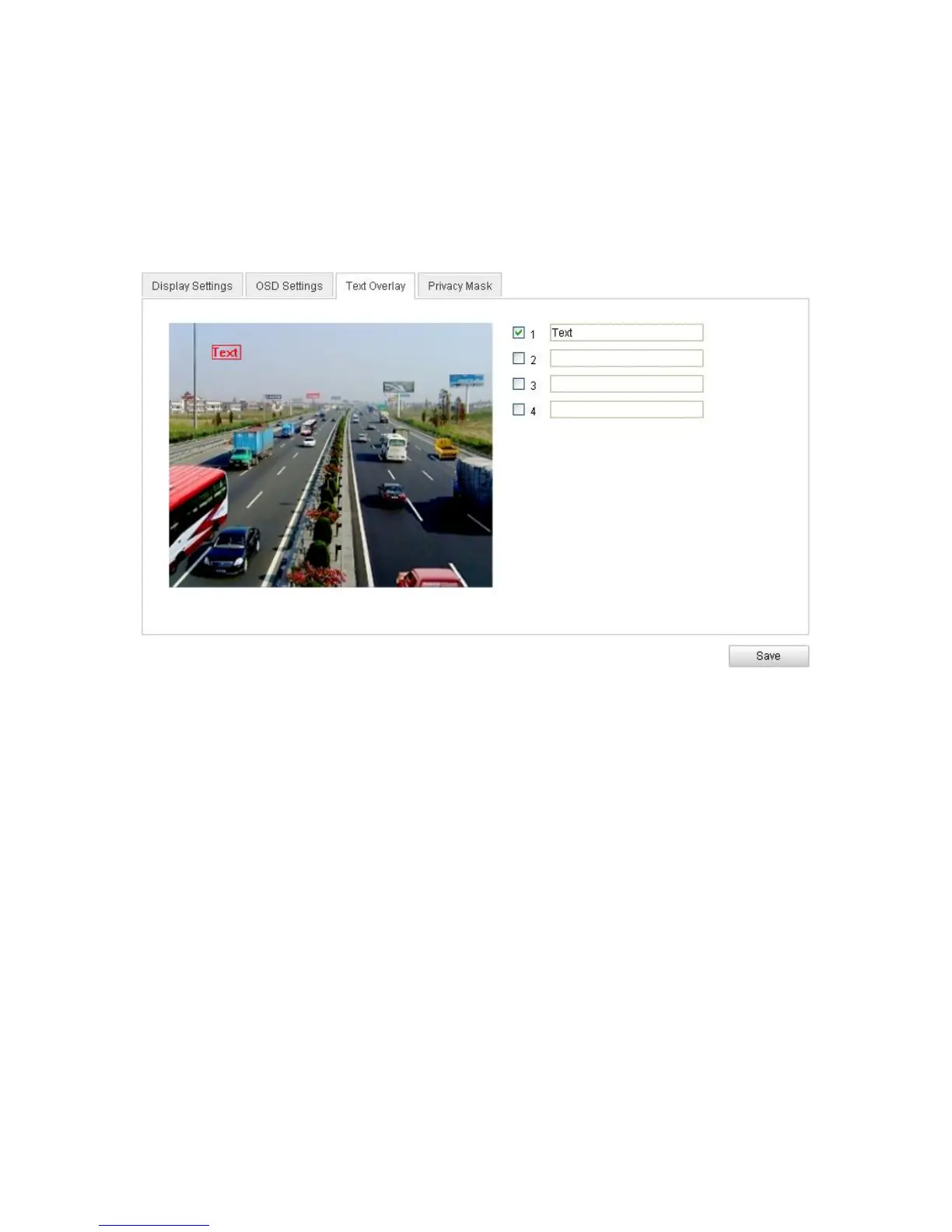 Note: You can configure up to four text overlays.