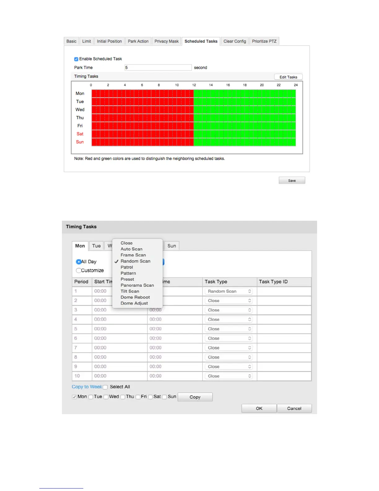 Note: You can copy the tasks to certain days of the week.