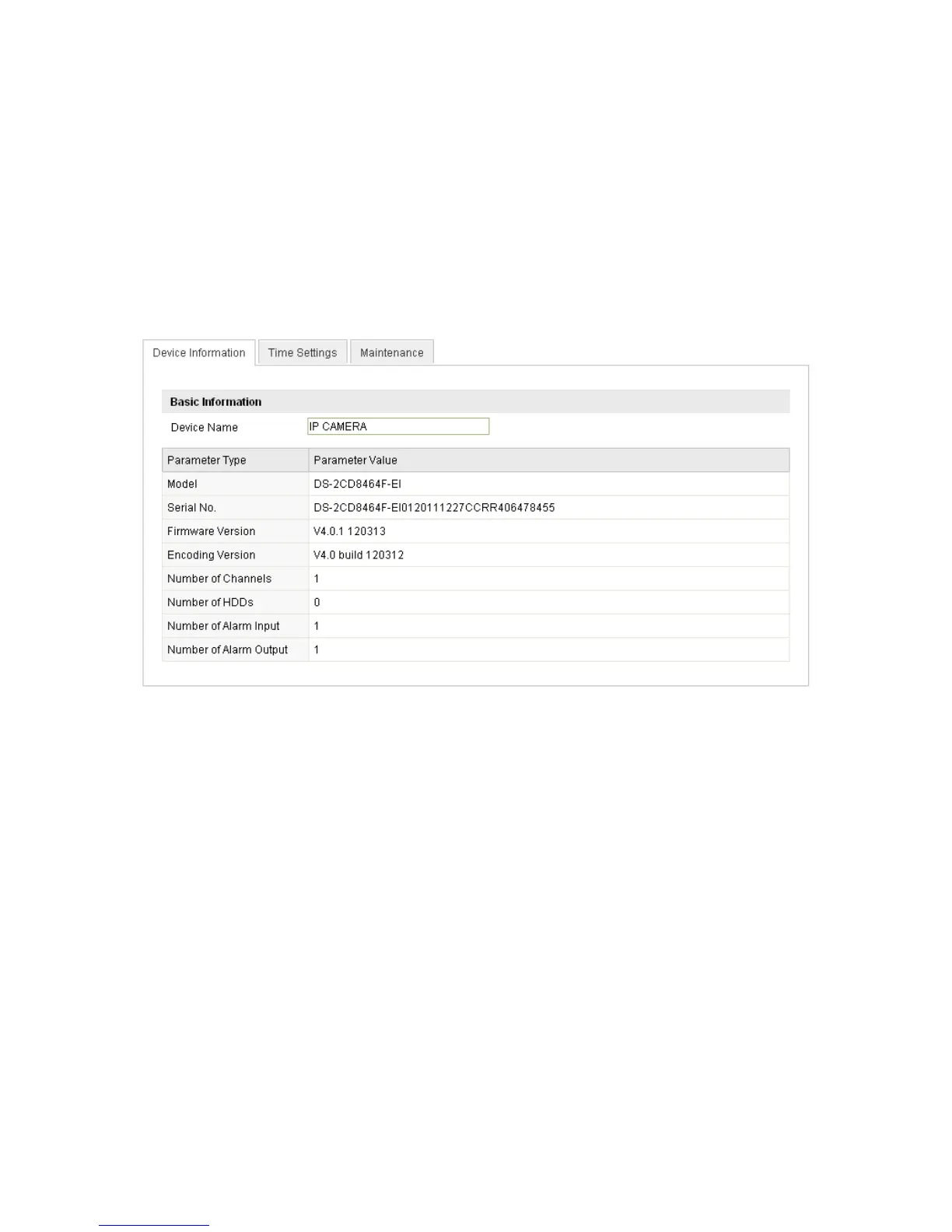 Other information of the network camera, such as Model, Serial No., Firmware Version,